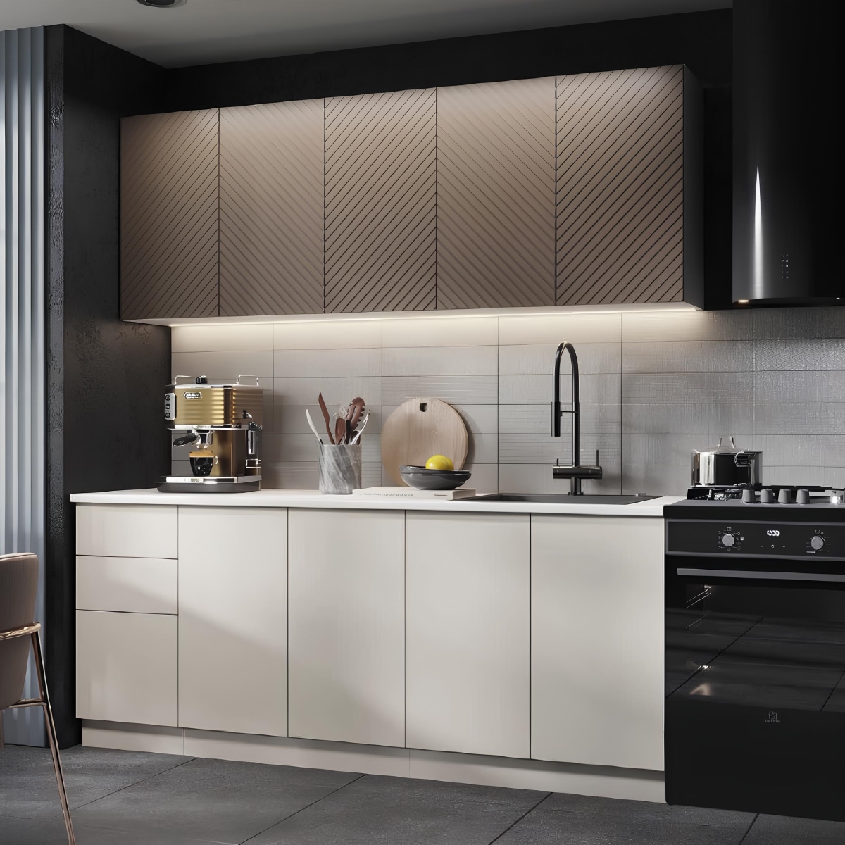 Кухня Урания 2 м Белый/Коричневый софт (Без столешницы)