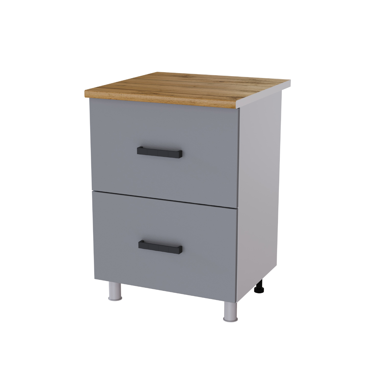 Лицевая фурнитура Ручки пластиковые, цвет Металлик, спереди опоры регулируемые круглые пластиковые (н=100 мм) цвет Металлик, технические черные сзади