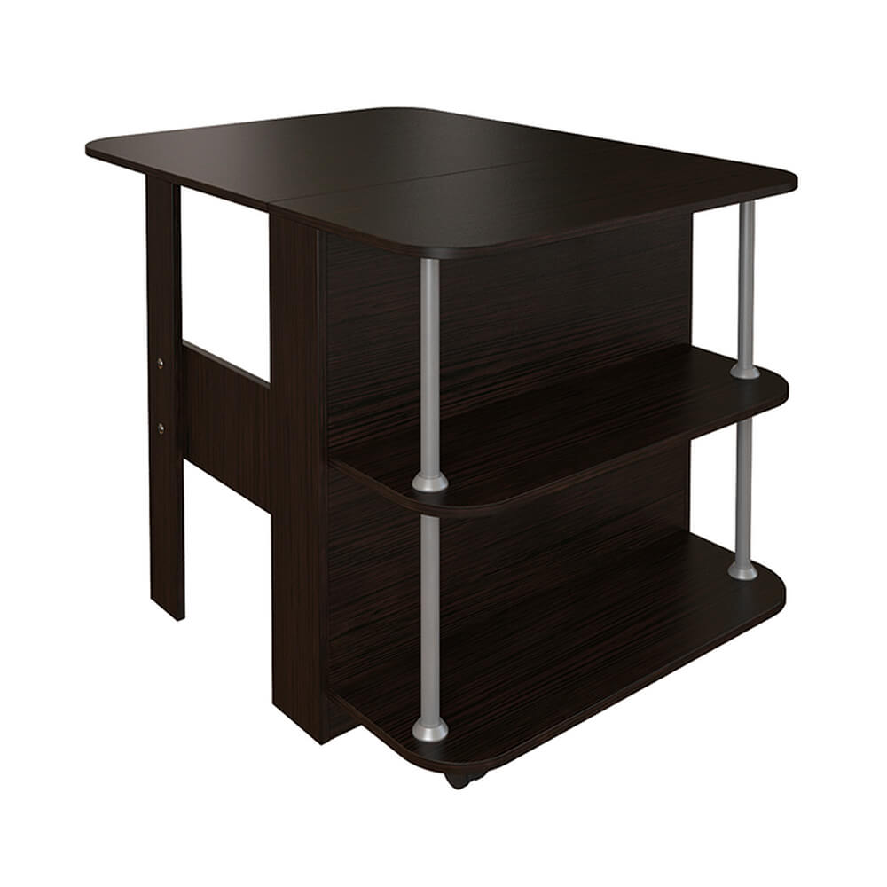 Раскладывая удобный и устойчивый механизм, обеспечивающий подпорку столешницы с безопасно закругленными краями, вы получаете полноценный обеденный стол, а благодаря конструкции, включающей в себя стеллаж, стол остается функциональным даже в сложенном состоянии.