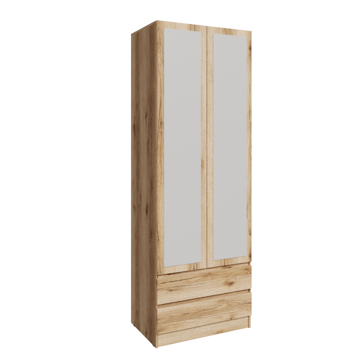 Шкаф Мадрид (0,8) с 2 ящиками без ручек, с зеркалом дуб делано