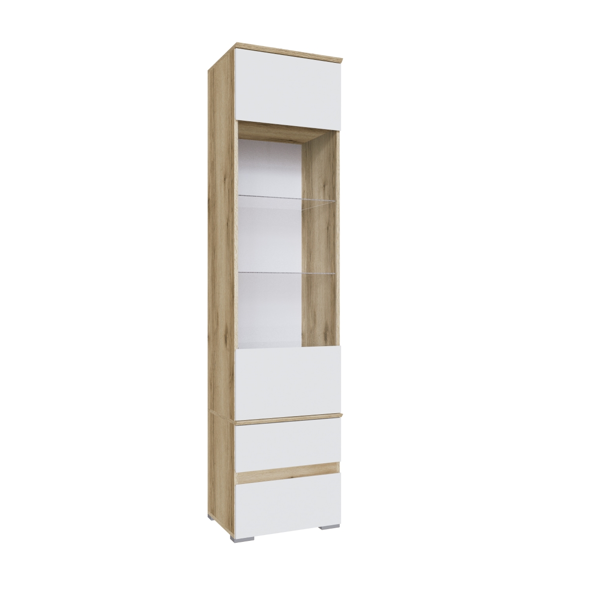 Шкаф (Пенал) Плейона витрина Дуб делано/БелыйГабариты (В×Ш×Г) 210 × 50 × 41.2 см