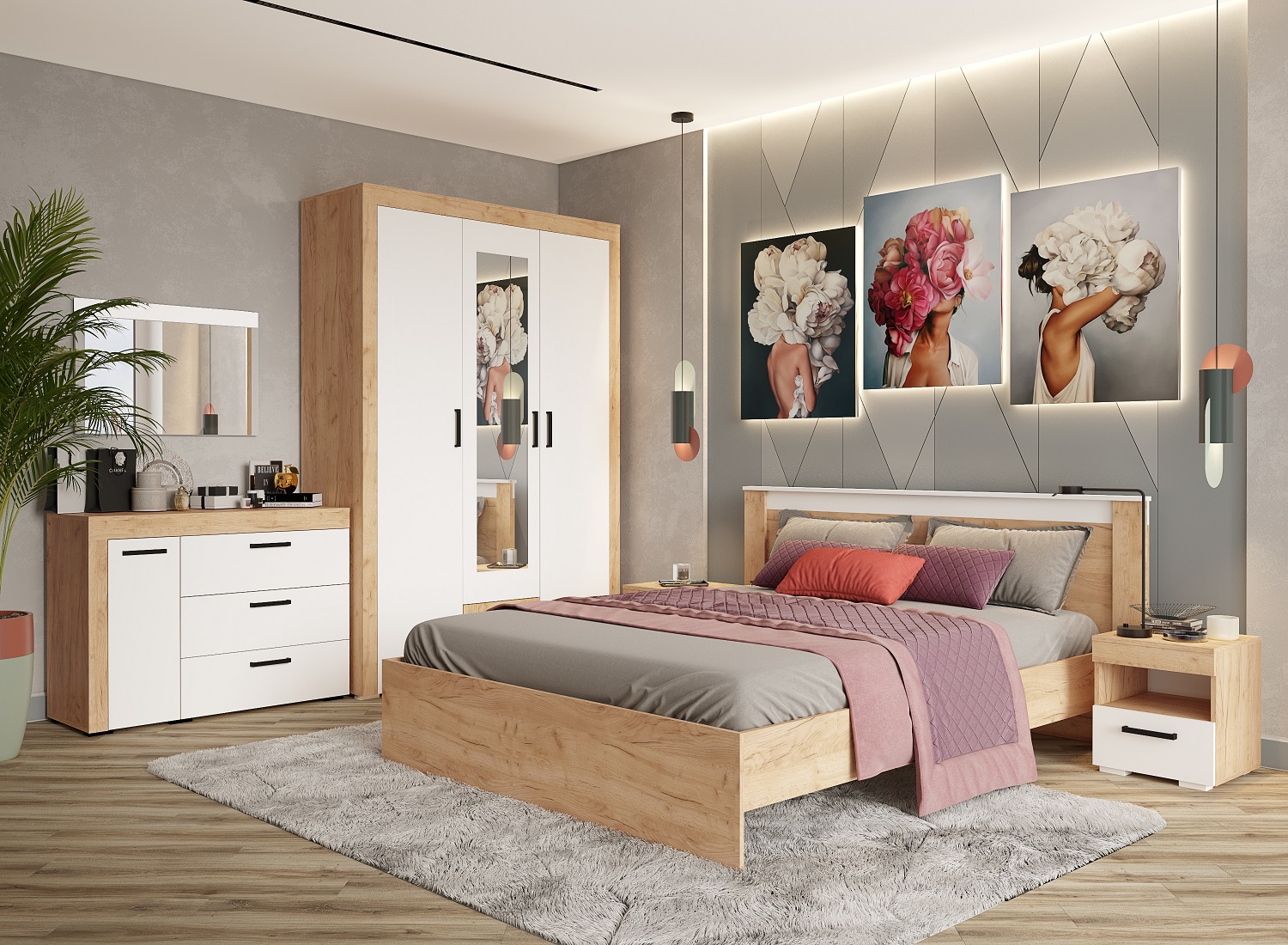 Спальный гарнитур Адель является готовым решением и поможет создать удобный интерьер комнаты в едином стиле.