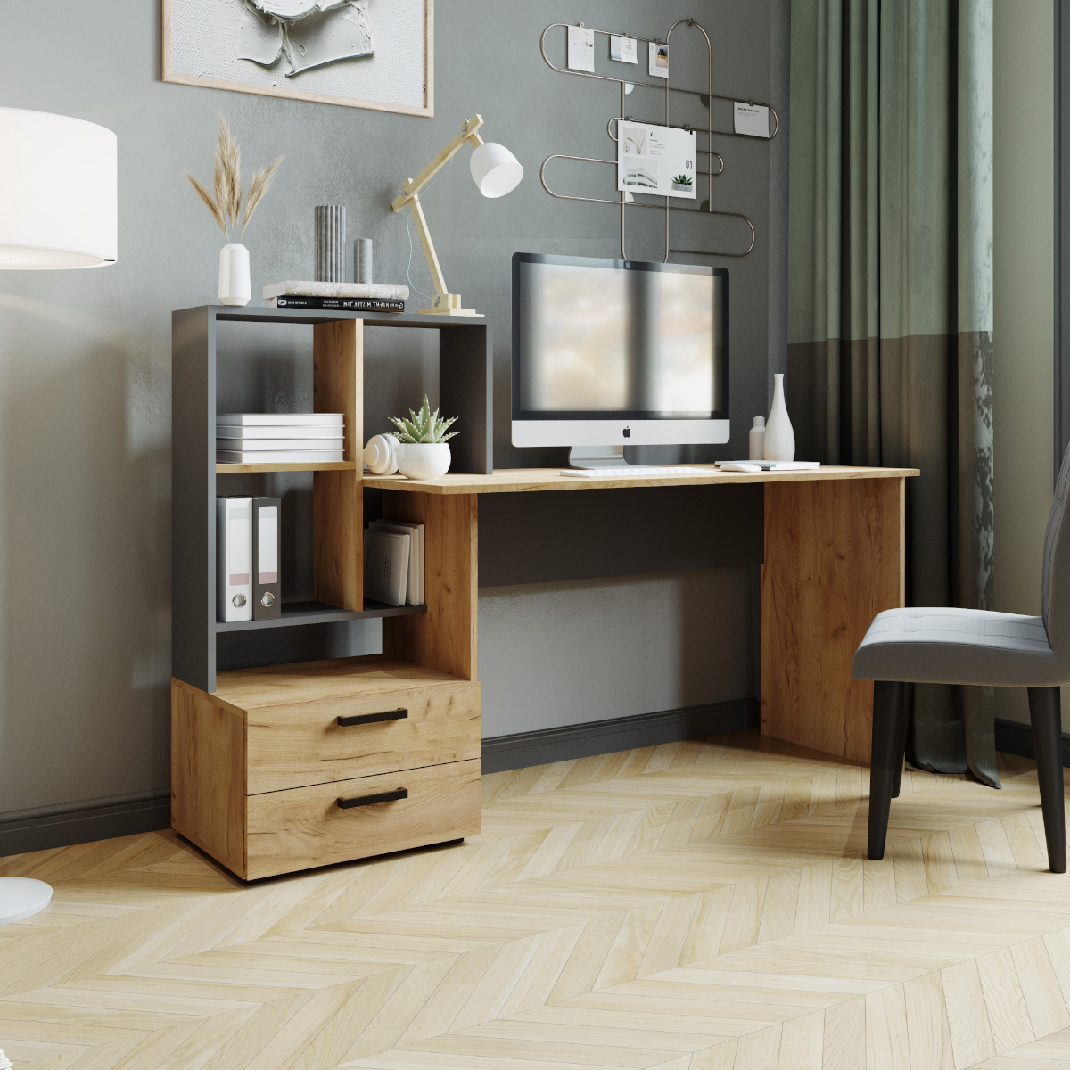 Компьютерный стол СКМ-5 графит серый/дуб крафт золотой