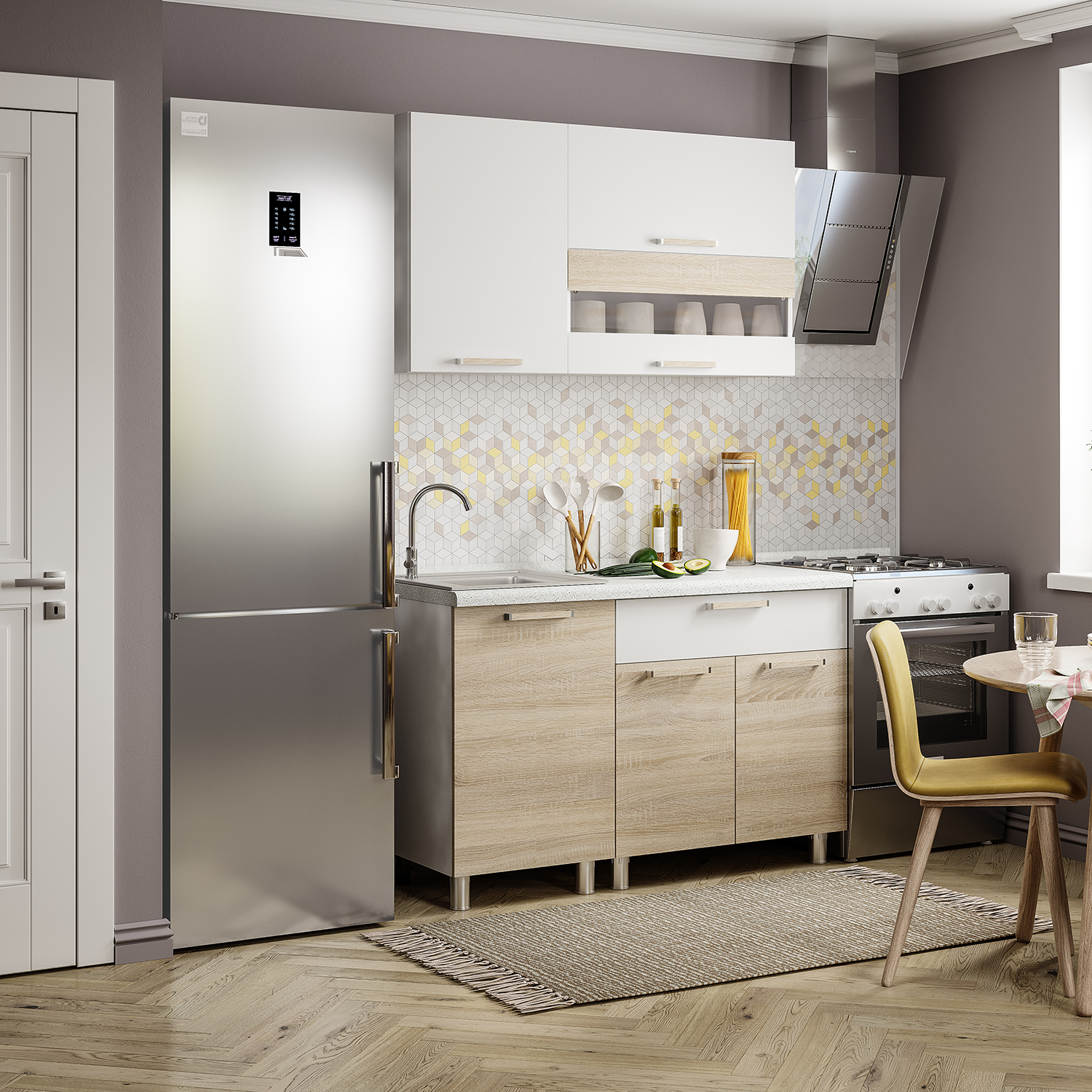 Кухонный гарнитур Токио 1,2м Серия 3 Белый текстурный/Дуб Сонома -фотоКухонный гарнитур Токио 1,6м Серия 3 Белый текстурный/Дуб Сонома -фото