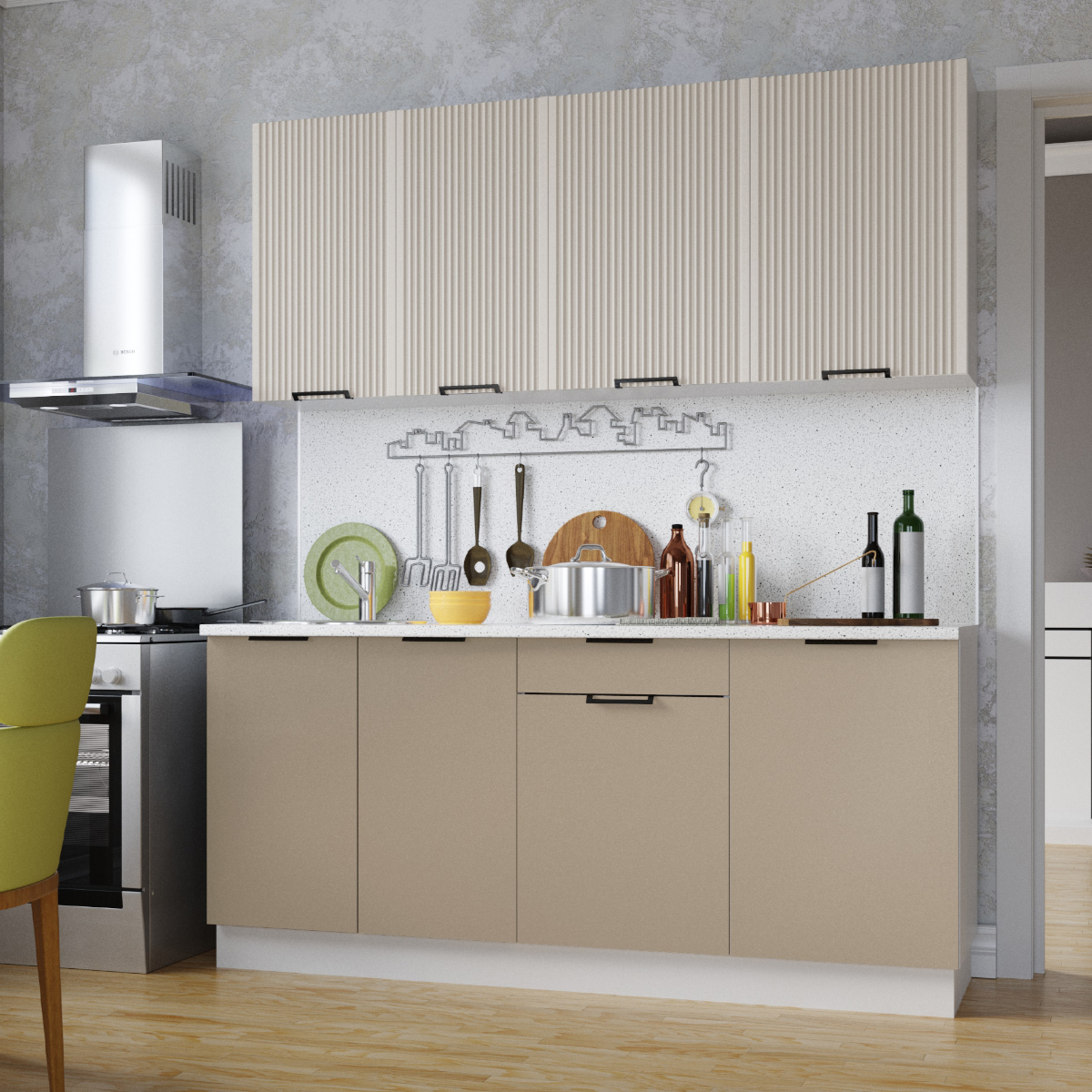 Кухня Кампео лайт комби 1,8 м Сантьяго софт/Кофе софт (без столешницы)