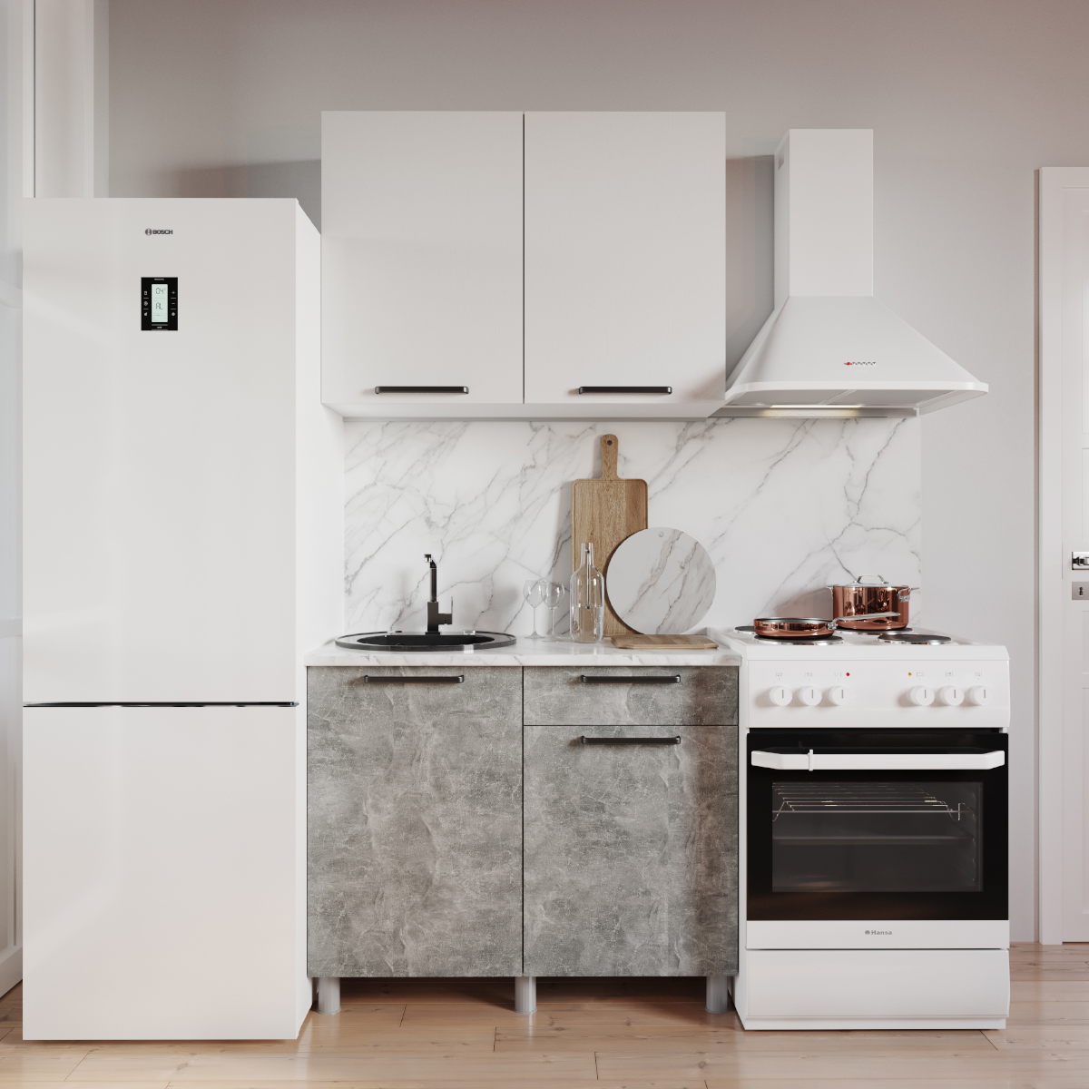 Кухня Кито готовое решение 2 м Ателье светлое/ БелыйГабариты (×Ш) × 200 см