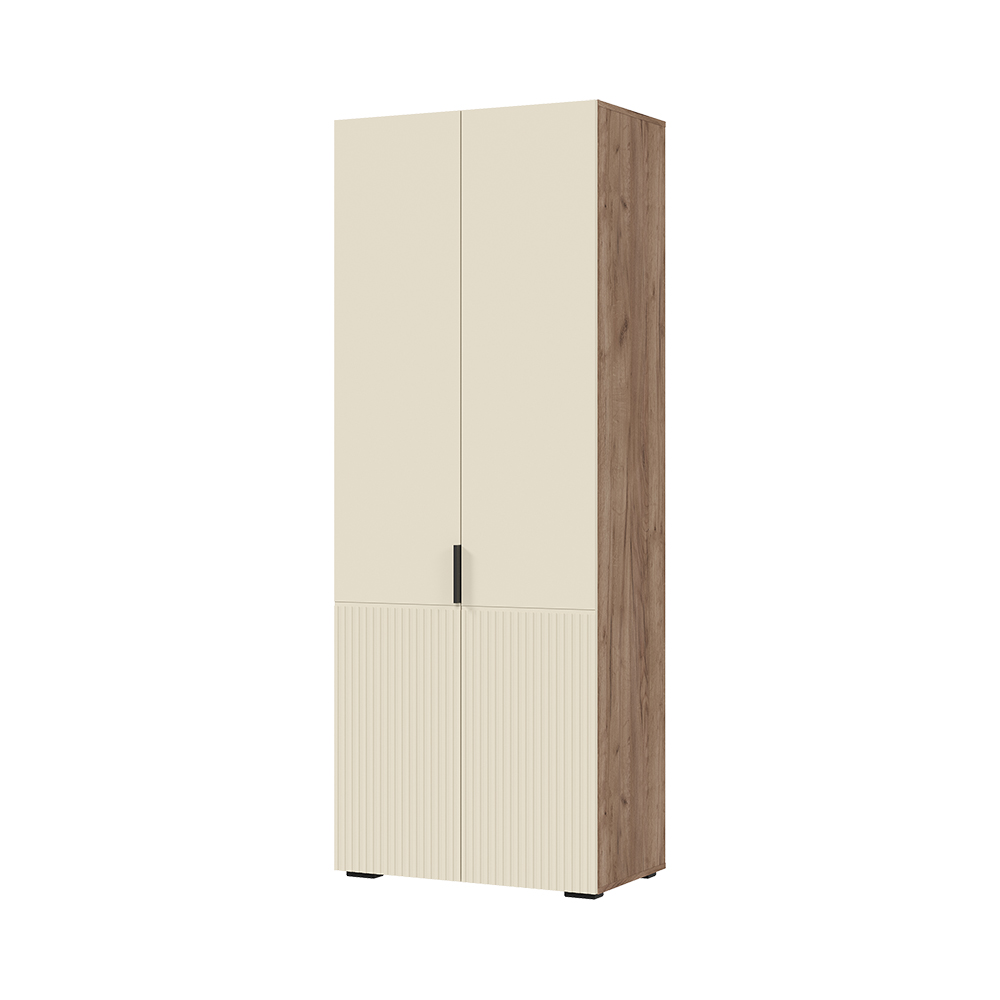 Модель двухстворчатого шкафа отличается компактностью, функциональностью и универсальностью. Шкаф сочетает элегантный дизайн с функциональностью: штанга для одежды, полки для обуви и других мелких вещей. Шкаф идеально впишется в небольшие помещения, но при этом имеет достаточно места для хранения.