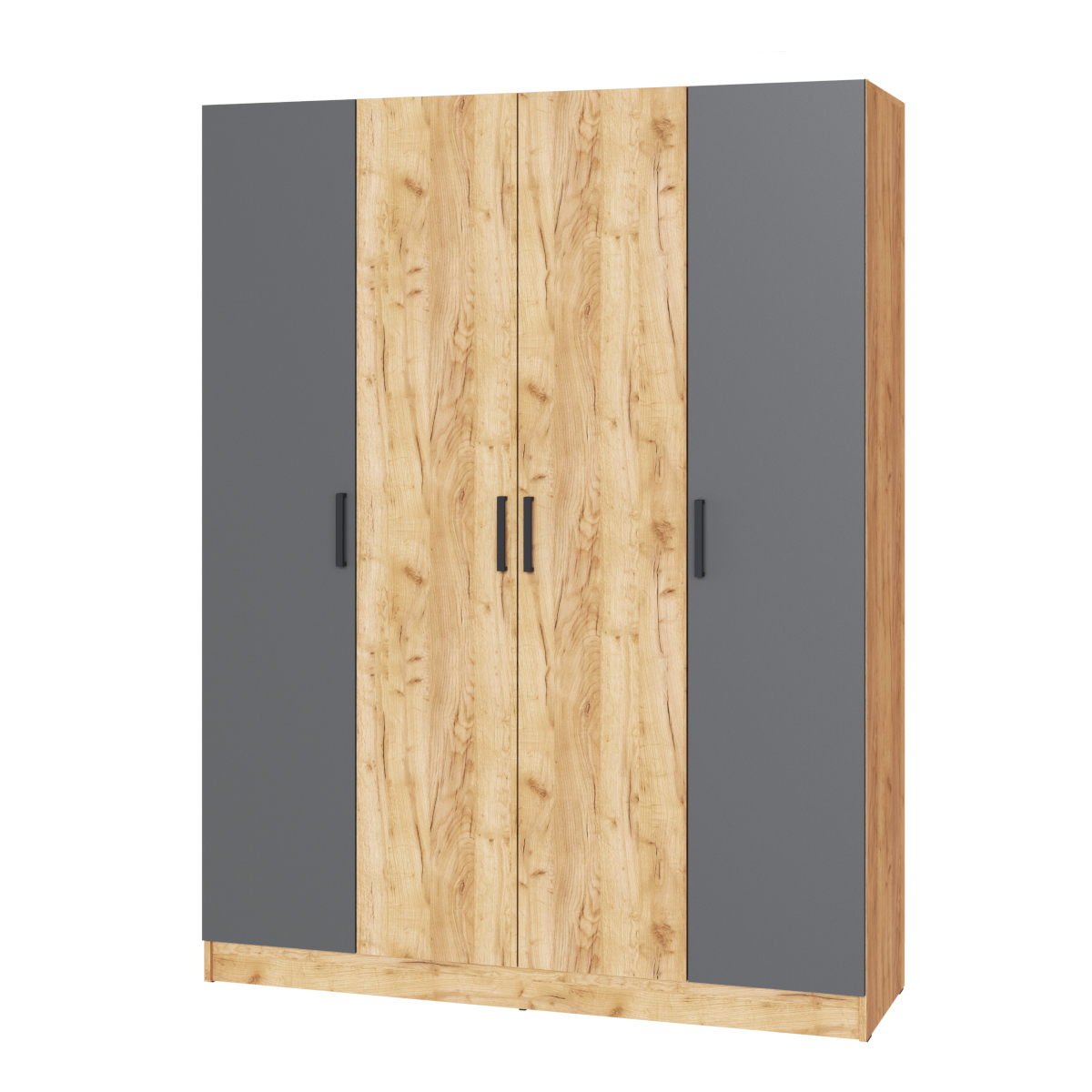 Шкаф Ларс (1,6) без зеркала дуб крафт золотой/графит серыйГабариты (В×Ш×Г) 210 × 160 × 51 см