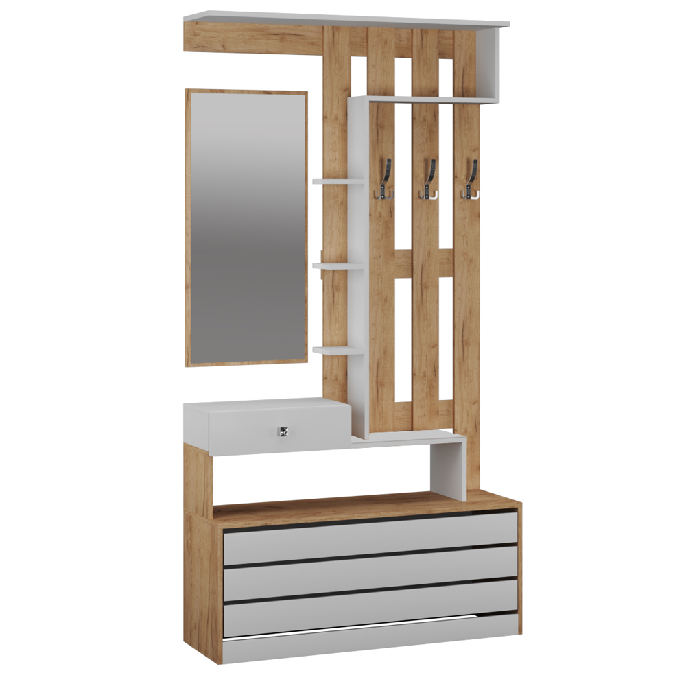 Серия мебели Ямайка и отличается достойным качеством исполнения и интересным дизайном: сбалансированные пропорции, оригинальное решение для фасадов, удачное сочетание оттенков белоснежного и золотого дерева способствуют созданию ощущения домашнего уюта, которое будет встречать вас и ваших гостей и сформирует первое впечатление о доме.