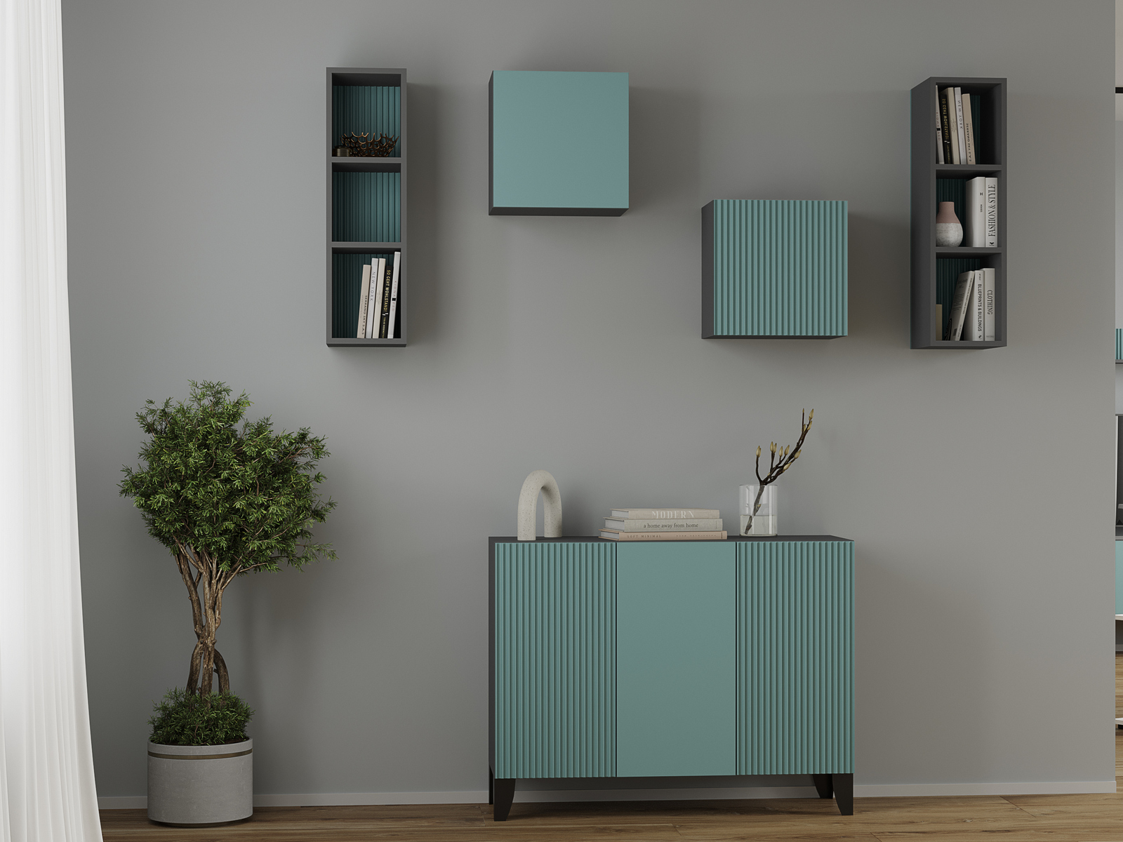 Гостиная Сириния графит серый/МДФ бриз