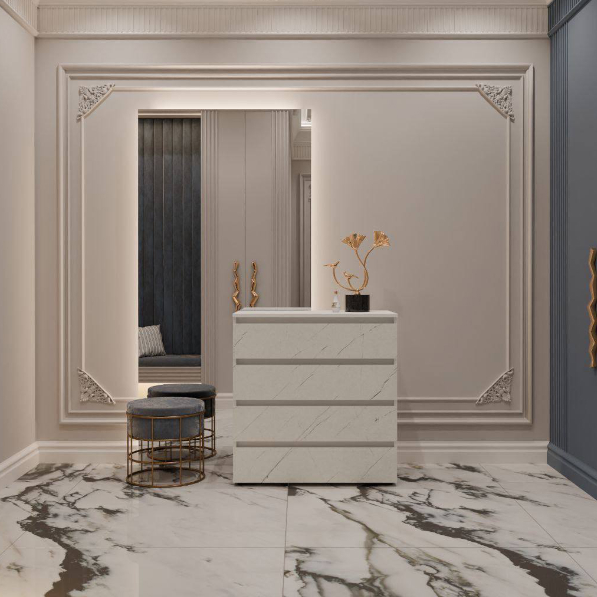 Комод Олимпия 1 Белый/Серый мраморГабариты (В×Ш×Г) 82 × 80 × 43 см