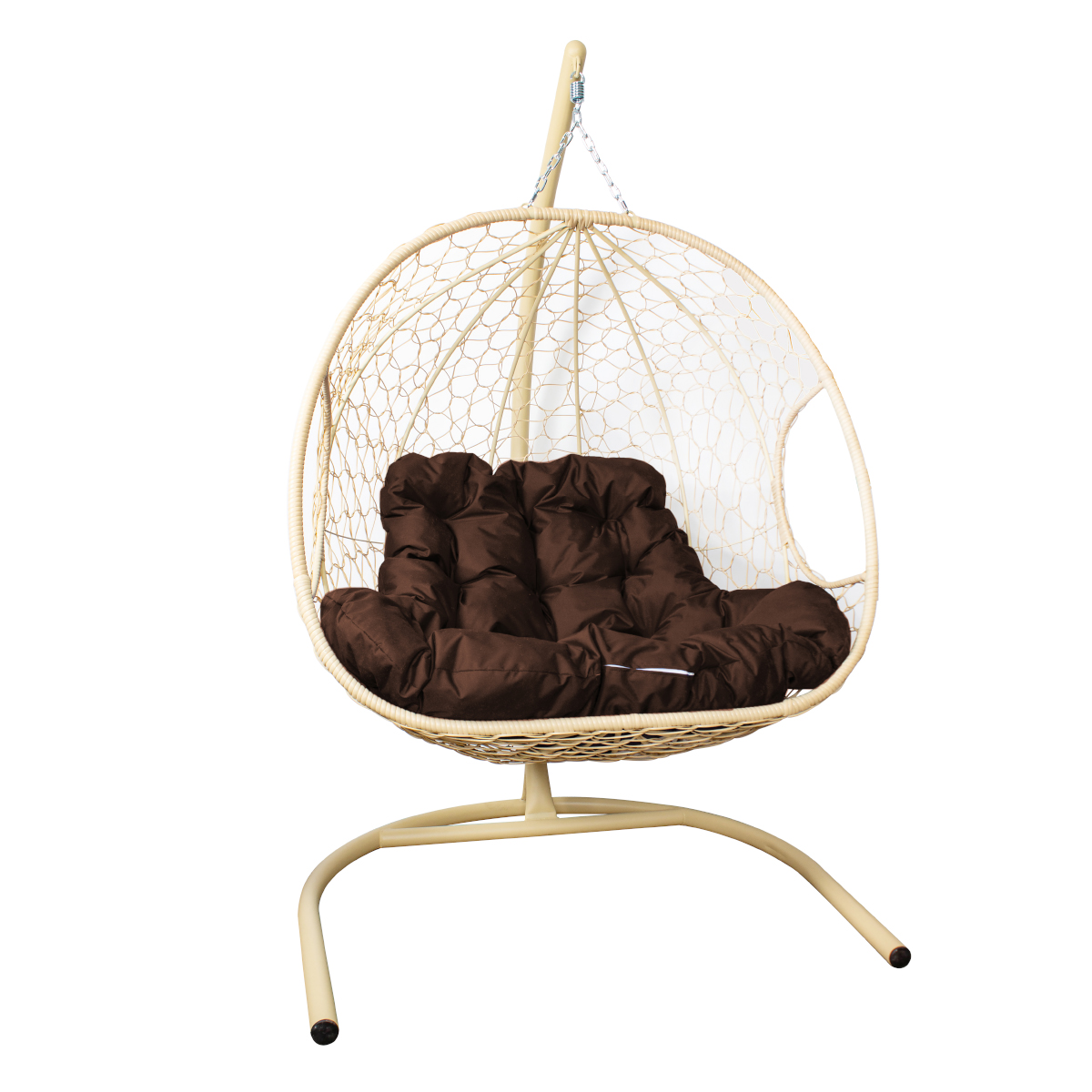 Кресло подвесное Для Двоих с ротангом бежевое, коричневая подушка