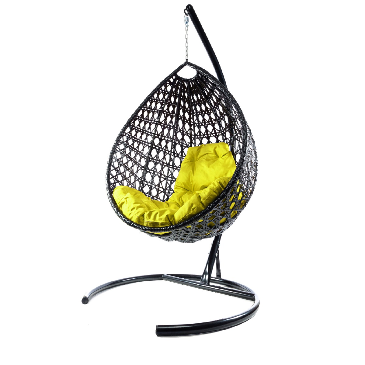 Кресло подвесное Капля Люкс с ротангом черный, желтая подушка