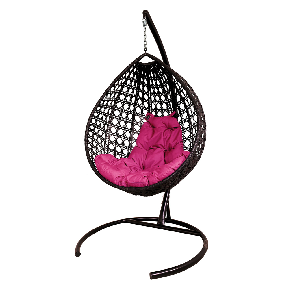 Кресло подвесное Капля Люкс с ротангом коричневое, розовая подушка