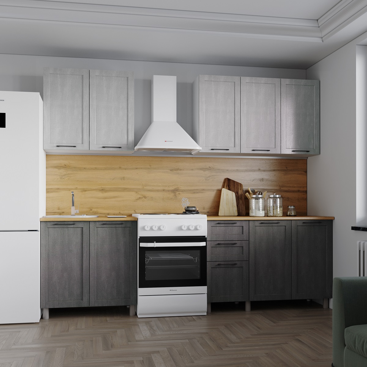 Кухня Кальяри готовое решение 2,0 м Холст грей/Холст натуральный