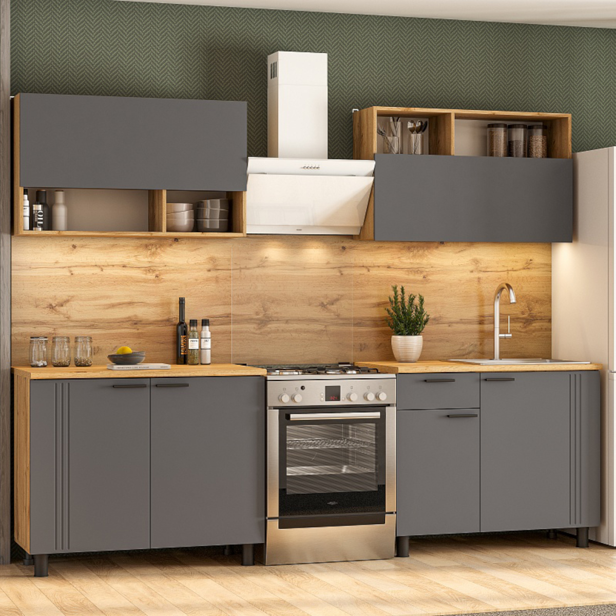 Кухня Монако 2 м Серия 2 Дуб Золотой/Графит/Дуб Вотан