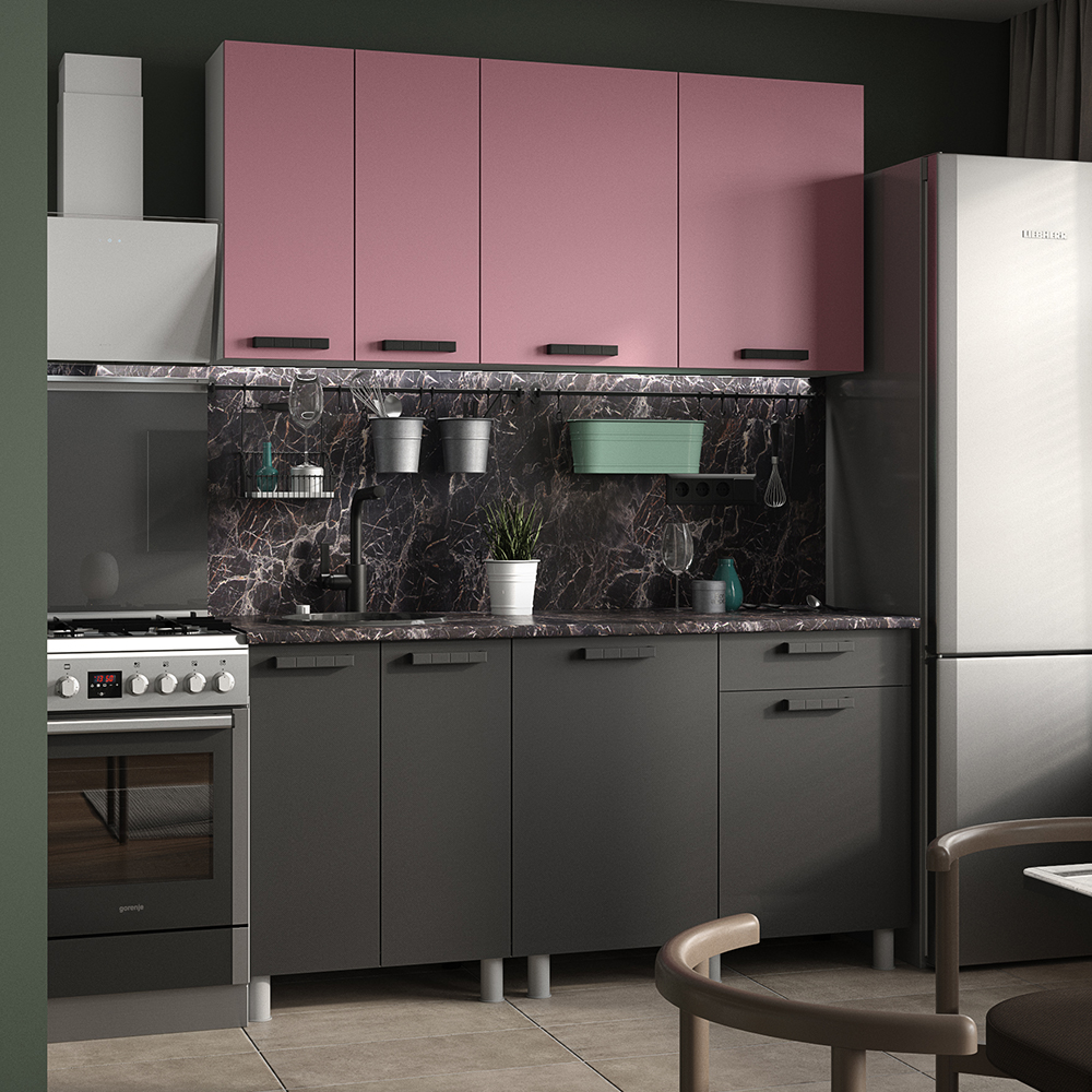 Кухня Осло 1,6 м Карбон Сакура/Карбон Вулкан (без столешницы)