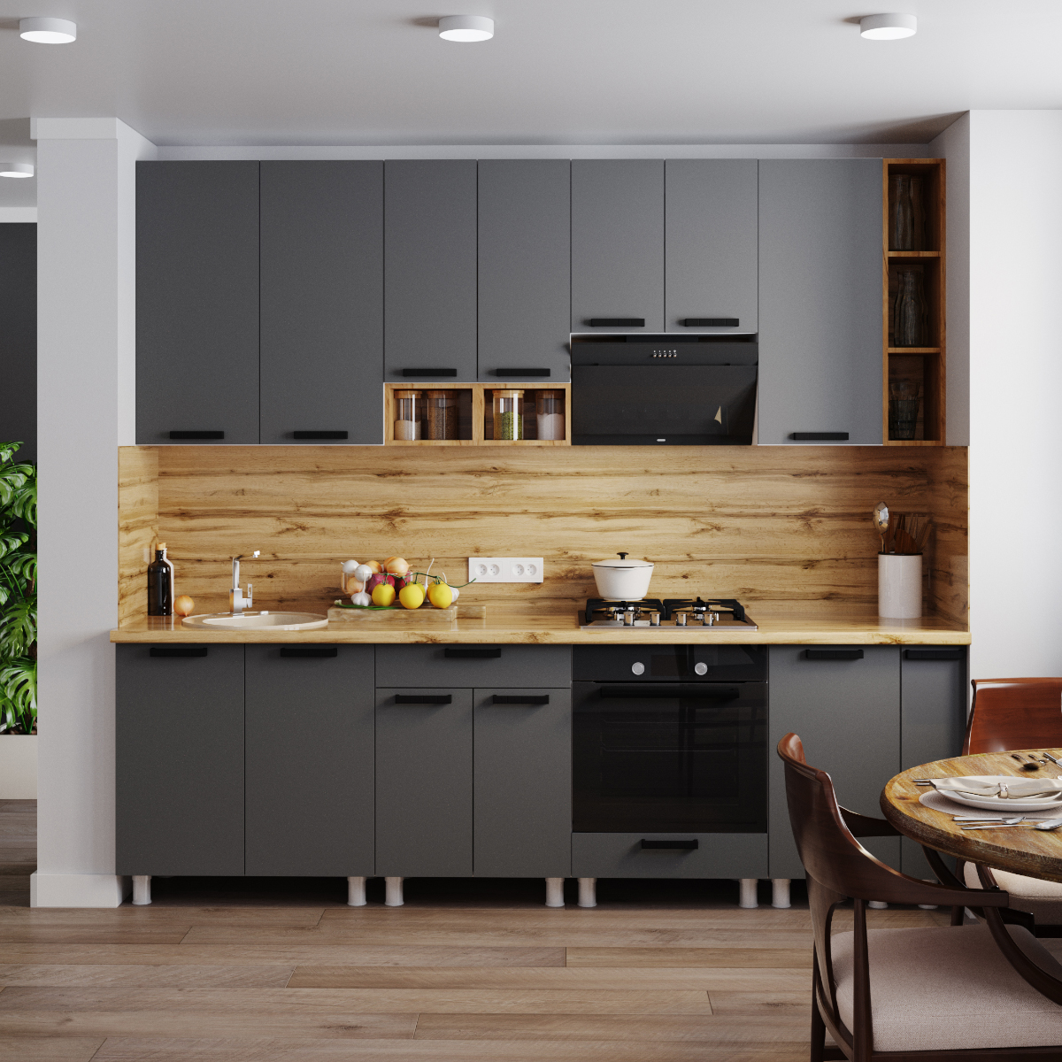 Столешница, стеновая панель, посудосушитель, мойка, соединительные планки и цоколь приобретаются отдельно.
