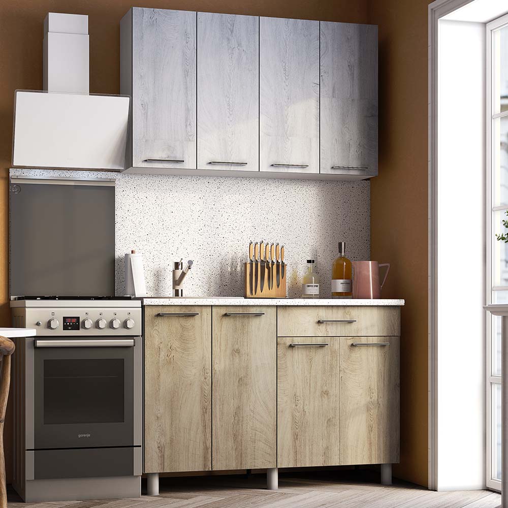 Кухня Палермо 1,2 м Дуб Остин Серый/Дуб Остин Бежевый (без столешницы)