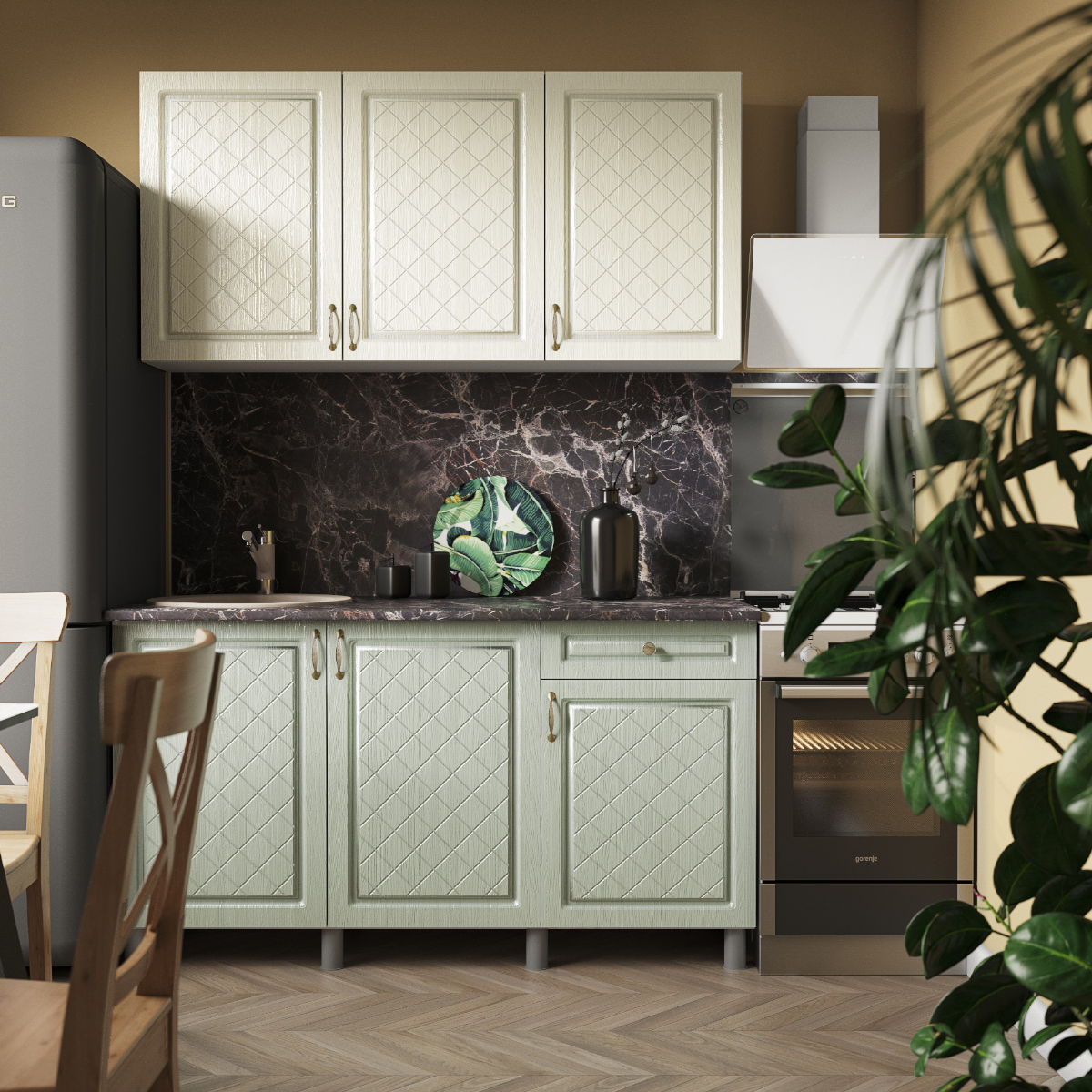 Материал фасада: МДФ матовая пленка ПВХ, цвет Айвори / Васаби.