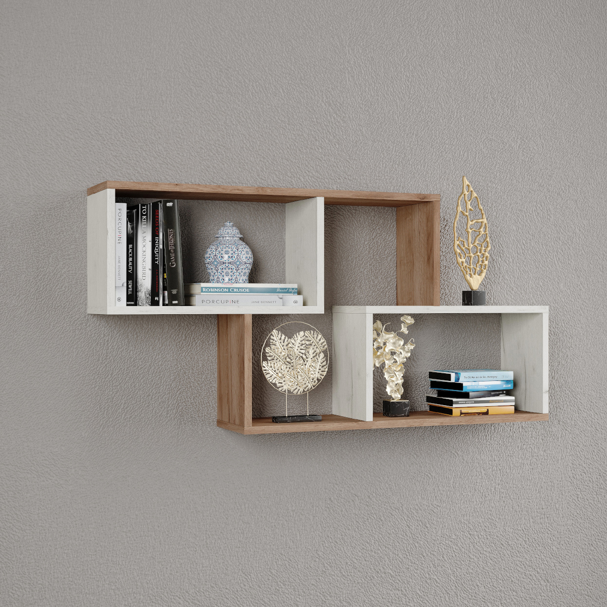 Полка навесная ПН-3 Дуб крафт табачный/Дуб крафт белыйГабариты (В×Ш×Г) 60 × 105 × 18 см