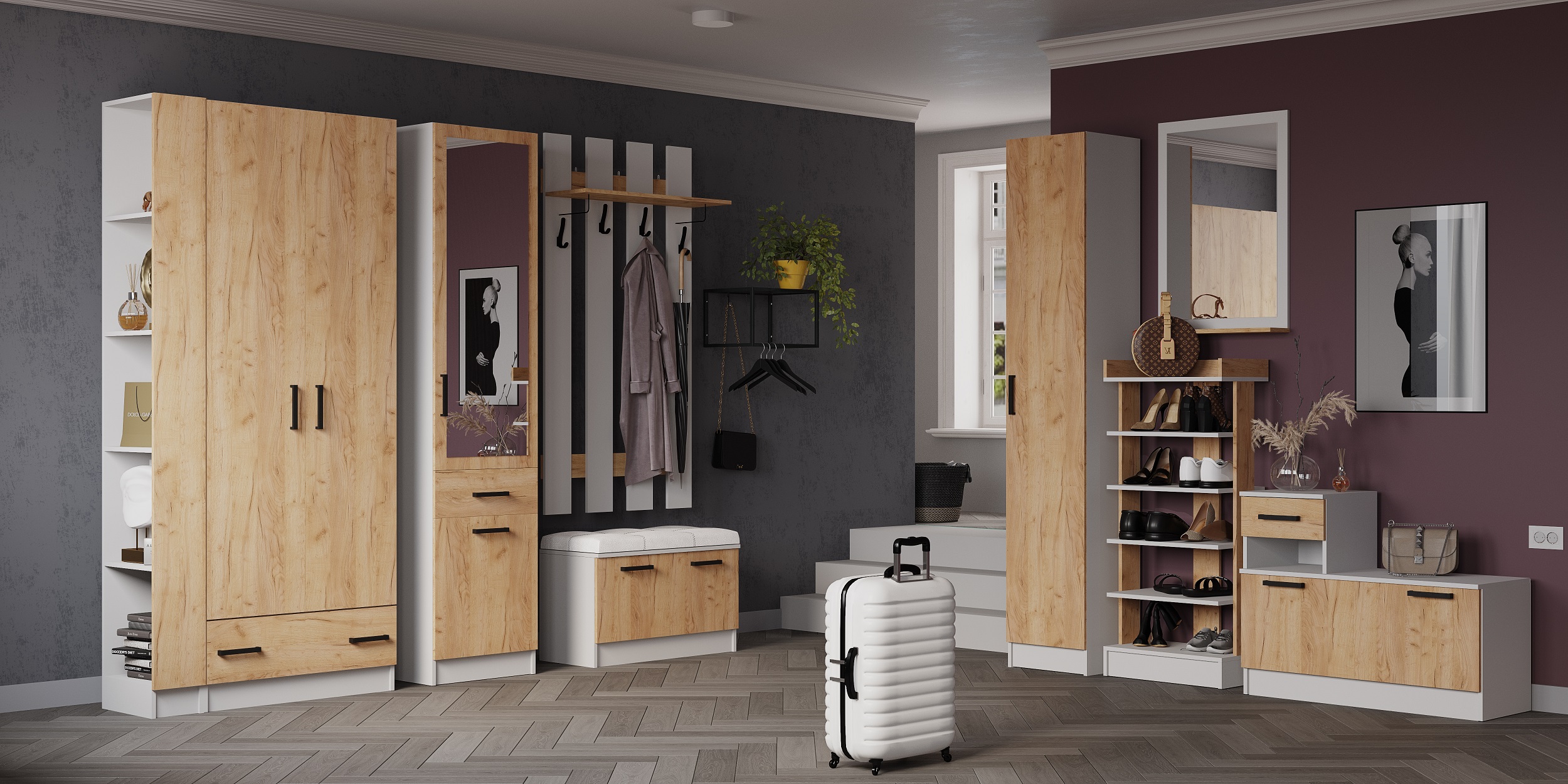 Прихожая Кевин белый/дуб крафт золотой композиция 2