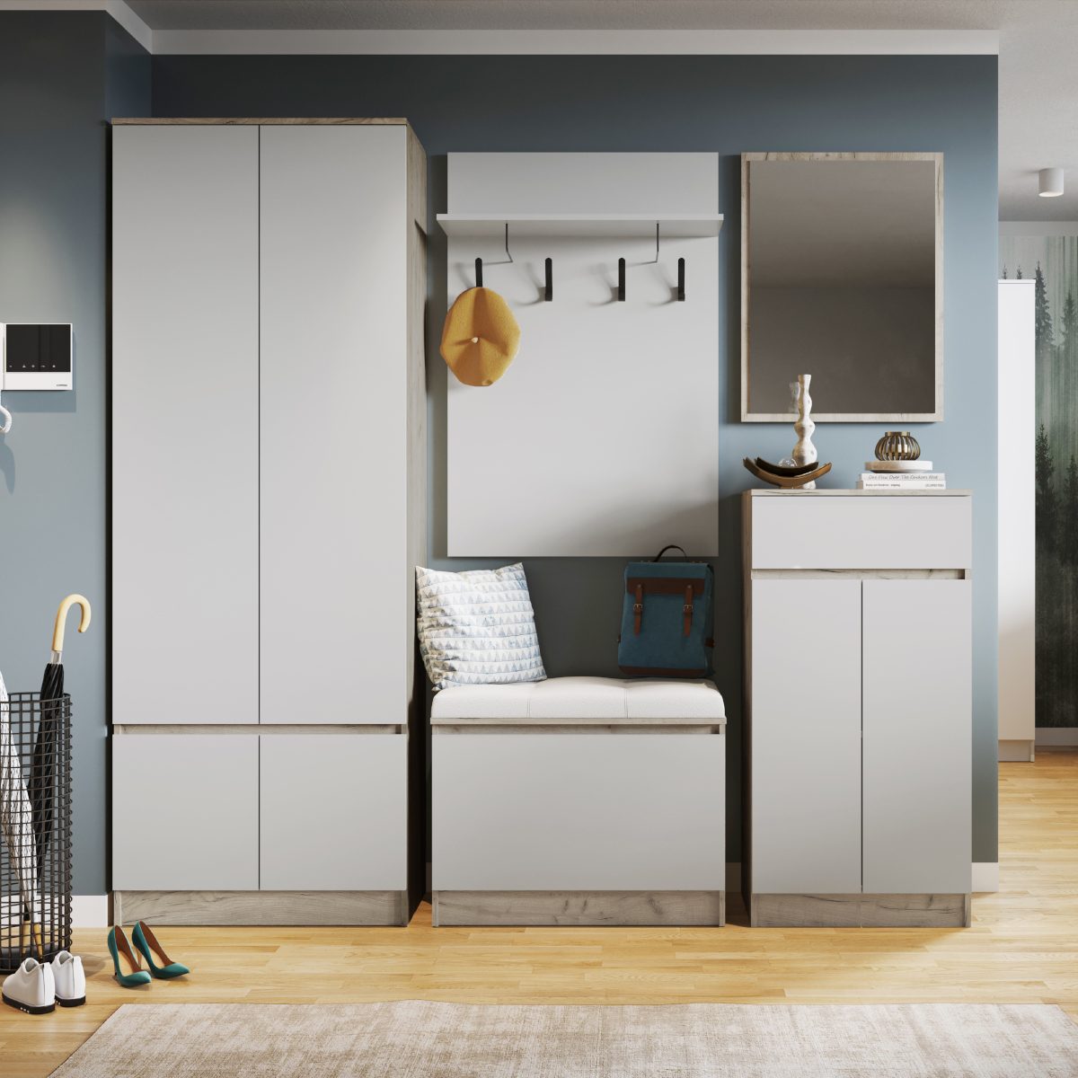 Прихожая Мэнкс Дуб крафт серый/Камень серый