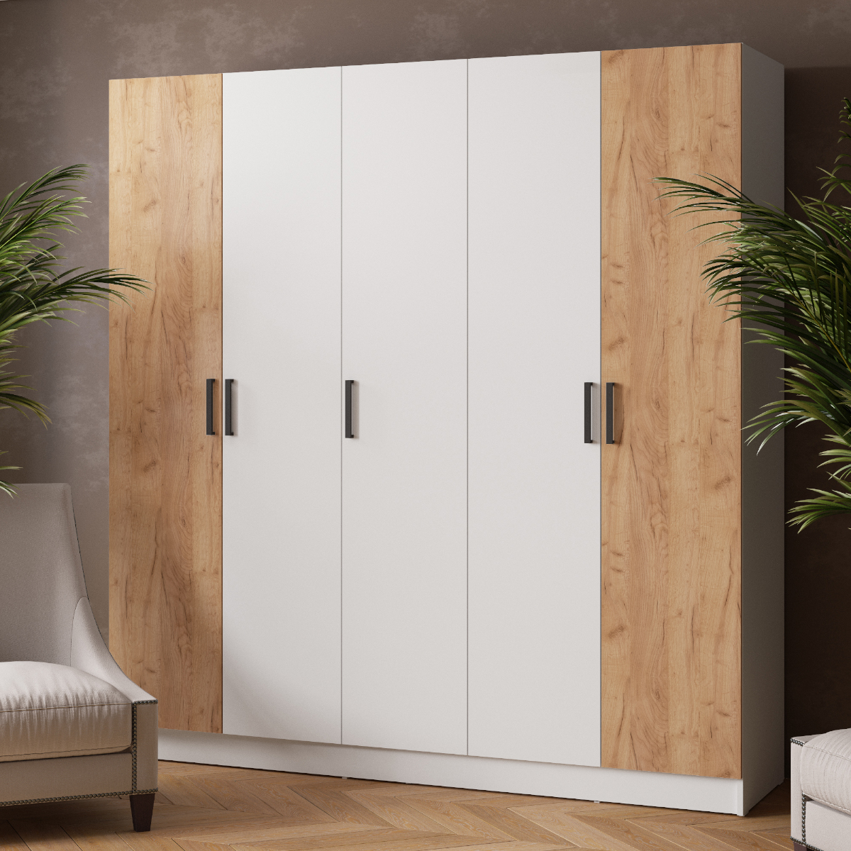 Шкаф Ларс (2,0) белый/дуб крафт золотой без зеркалаГабариты (В×Ш×Г) 210 × 200 × 51 см
