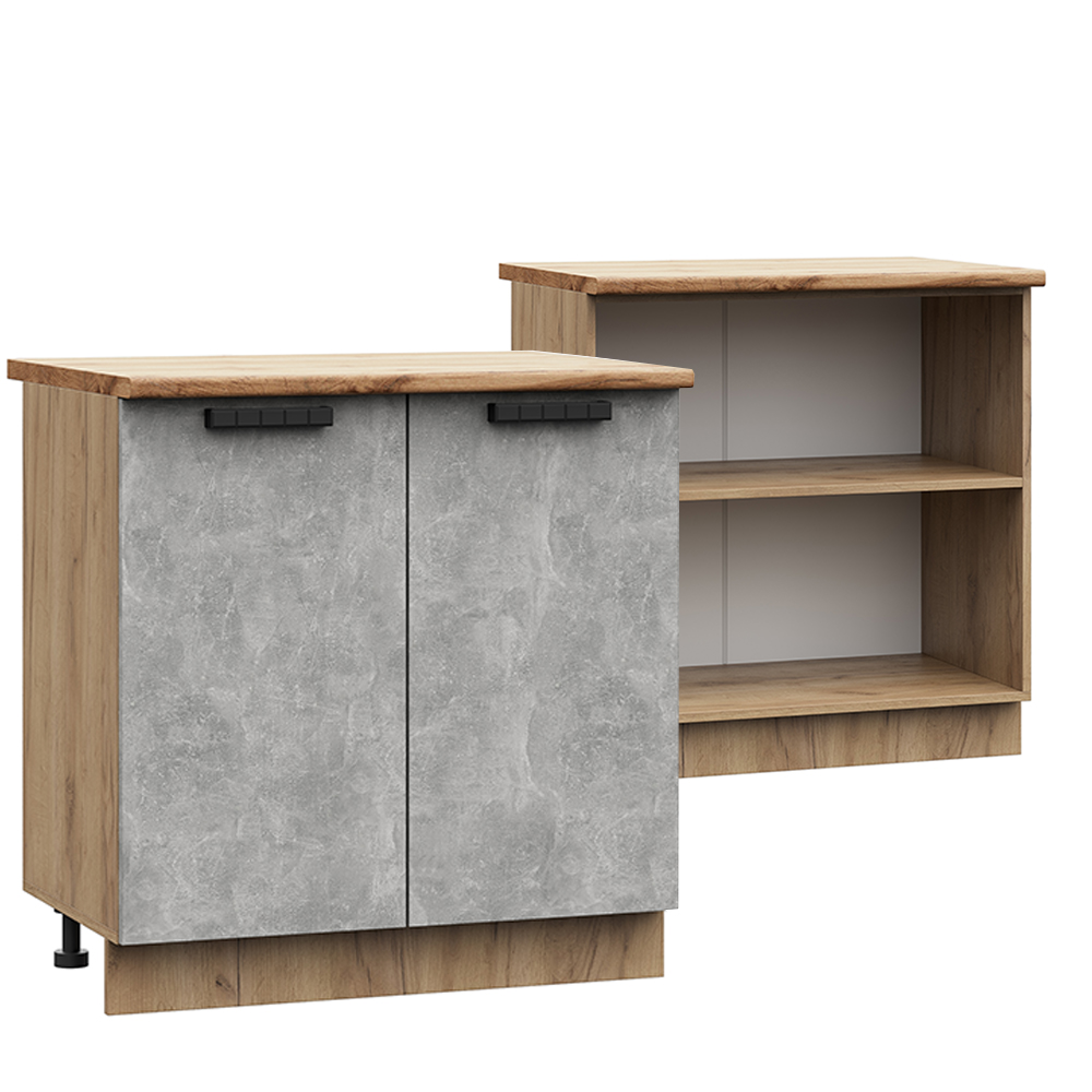Шкаф нижний ШН 800 Б/СТ (0,8х0,82х0,474)/корпус ДУБ КРАФТ ЗОЛОТО/фасад МДФ Бетон Снежный/Бетоны