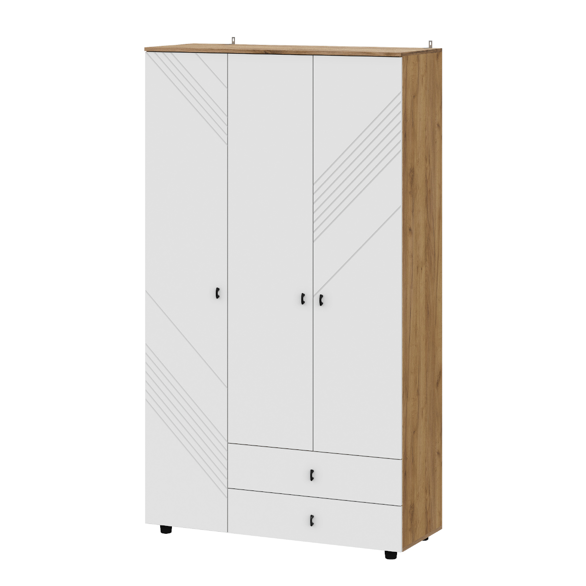 Шкаф трехстворчатый с ящиками Байкал Дуб Золотой/Белый матовыйГабариты (В×Ш×Г) 210.6 × 120 × 46.4 см