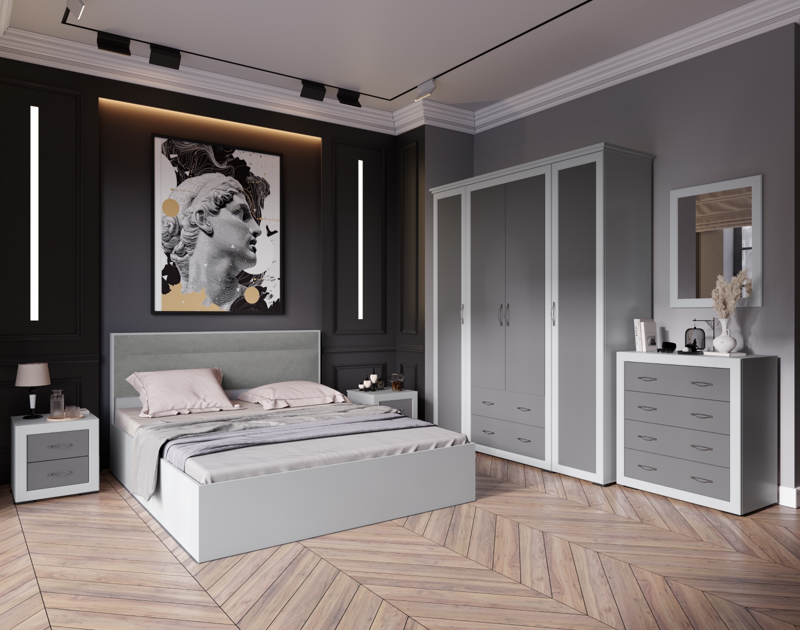 Спальня Леньяна камень серый/графит серый+светло-серый
