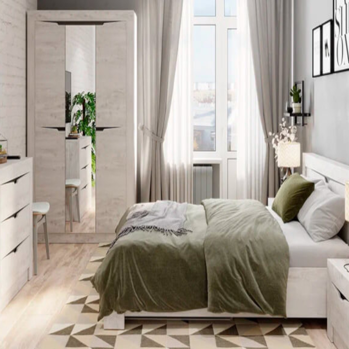 Спальный гарнитур «Леонардо» прекрасно впишется в любой современный интерьер. В комплекте есть всё необходимое для обустройства пространства: широкая кровать и коллекция модулей для хранения одежды, аксессуаров и постельных принадлежностей. Цветовое решение корпусов и фасадов – настоящий тренд нашего времени – простой и выразительный, продуманный и небрежный, функциональный и непритязательный – он создаёт атмосферу уличного искусства, а текстура старого дерева добавляет декору индивидуальности. Оригинальное конструктивное решение коллекции - визуально увеличенная толщина корпуса , что придает коллекции солидности.