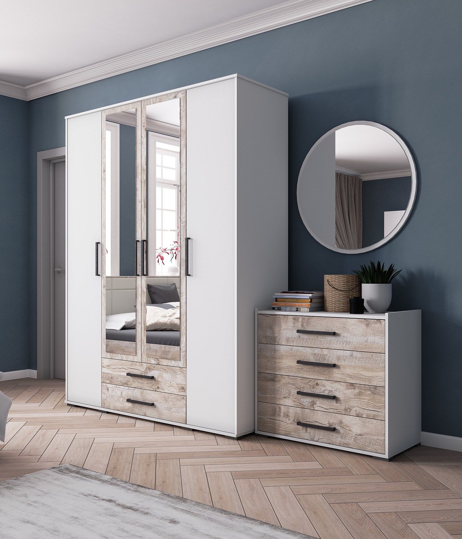 Материал фасада: ЛДСП Белый с тиснением «Древесные поры», ЛДСП Дуб юкон «Kronospan», кромка 0,4 мм