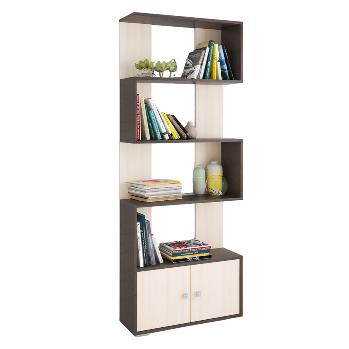 Удобный стеллаж имеет 4 секции в виде змейки и нижнее отделение с двумя распашными дверцами. На модели удобно расположить коллекции книг, семейные фотографии, сувениры. Закрытое отделение поможет скрыть от глаз другие ценные предметы.