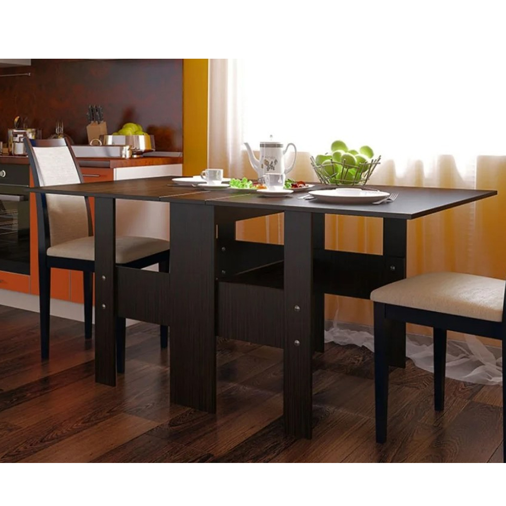 Если вы ищете компромисс между желанием иметь на кухне или в гостиной побольше свободного места и необходимостью разместить всех домочадцев и гостей, то ваш идеальный выбор — стол-книжка. Выполненное в лаконичном стиле, это замечательное изделие станет вашим верным помощником в подготовке к семейной трапезе или торжеству по значимому поводу.Буквально в считанные секунды и без особых усилий модель раскладывается в компактный кухонный или большой обеденный стол, а после использования так же легко трансформируется в узкую тумбу, которую можно прислонить к стене или задвинуть в угол, тем самым освободив пространство помещения.