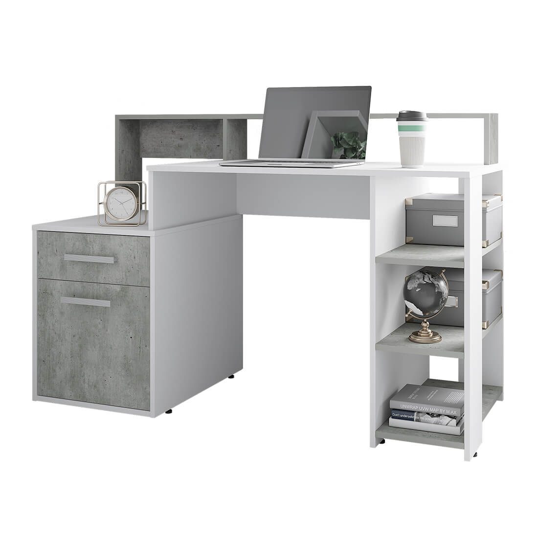 Универсальное сочетание светлых оттенков ЛДСП белоснежного и текстурного серого поможет столу вписаться в интерьер любого оформления.