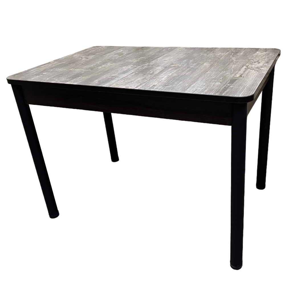 Обеденный стол Лидер отлично дополнит обеденную зону и станет незаменимым элементом интерьера: стильное сочетание матированных черных опор стола и столешницы с декоративно состаренной древесной текстурой выглядят привлекательно, а поверхность устойчива к воздействию и легко поддается уходу.