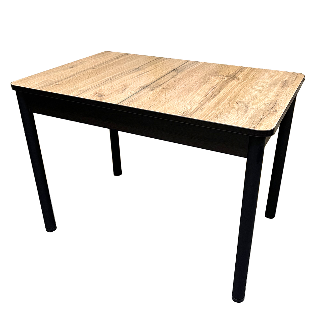 Обеденный стол Лидер отлично дополнит обеденную зону и станет незаменимым элементом интерьера: стильное сочетание матированных черных опор стола и столешницы из текстурированной золотого дерева выглядят привлекательно, а поверхность устойчива к воздействию и легко поддается уходу.
