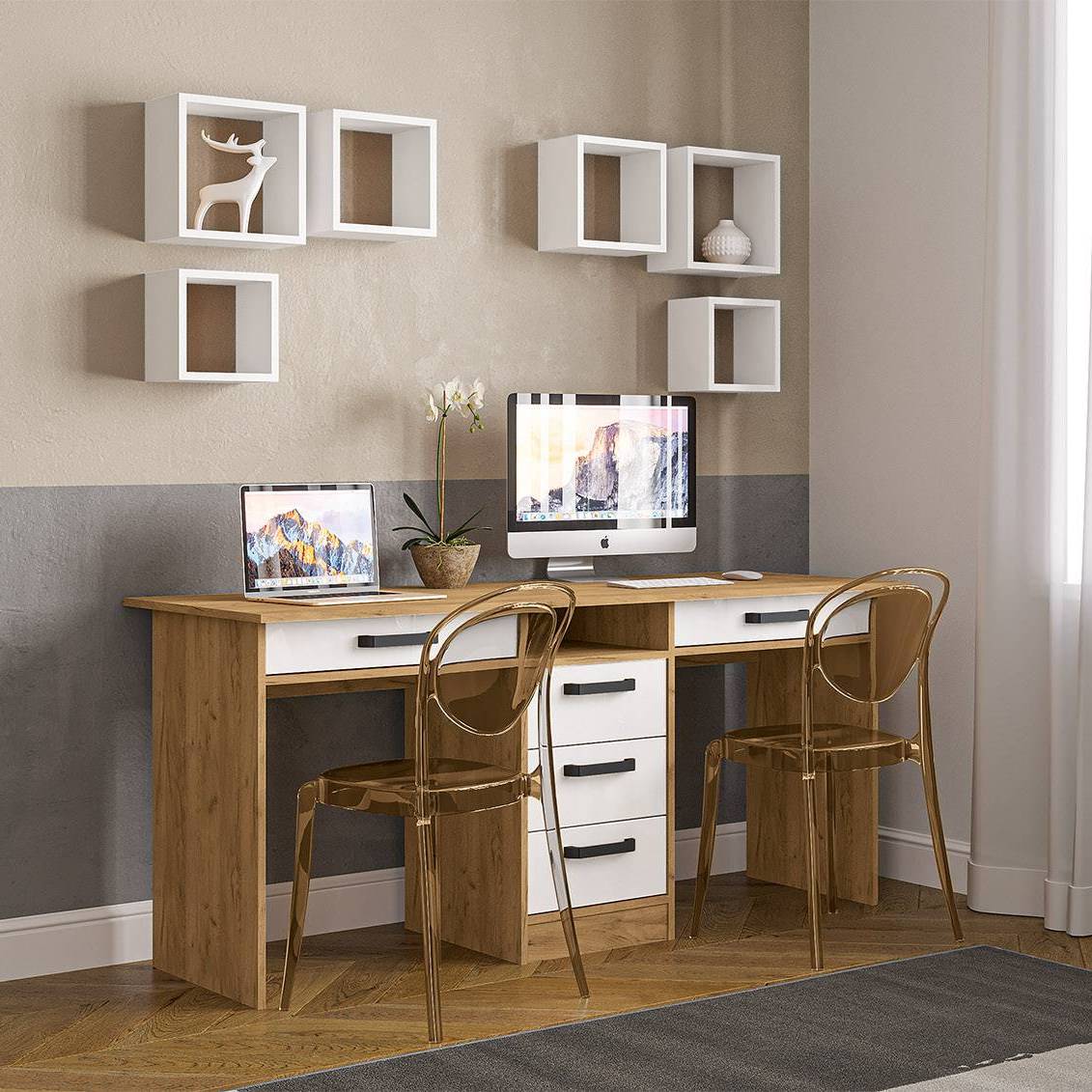 Этот стол предлагает эргономичное решение обустройства двух рабочих мест одновременно: стильно, удобно и надежно. Такой стол отлично подойдет как для детской комнаты с двумя детьми в качестве ученического места - для занятий и творчества, так и в качестве офисной мебели для работы с документами или ноутбуком.