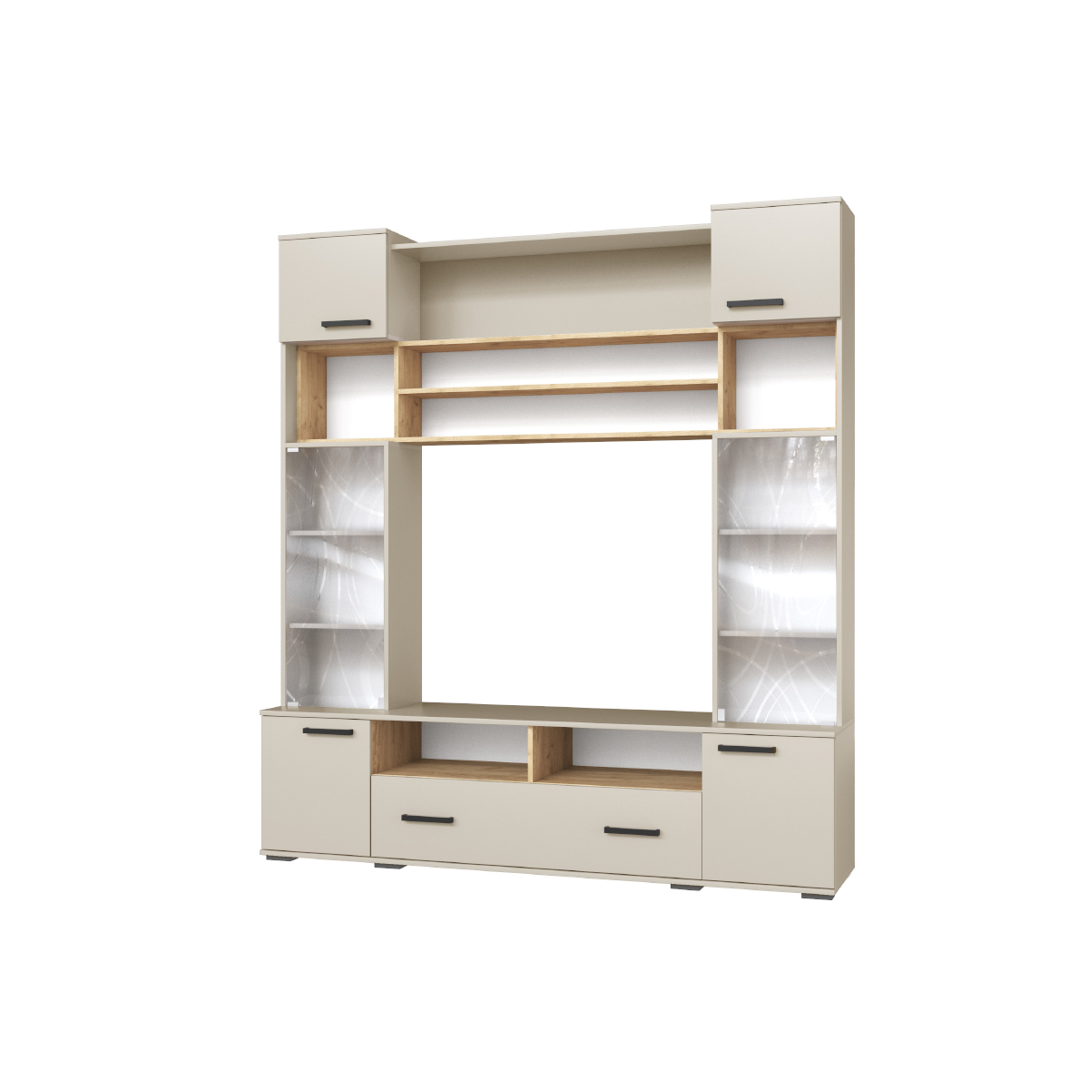 Центральная секция Оскар-18 станет готовым решением вопроса организации обстановки гостиной комнаты: с ее помощью можно стильно и эргономично и удобно распределить для хранения и использования необходимые вещи, видео и аудио-аппаратуру или книги, а также придать интерьеру свой собственный стиль, разместив на открытых полках элементы декора, сувениры или любимые фотографии.