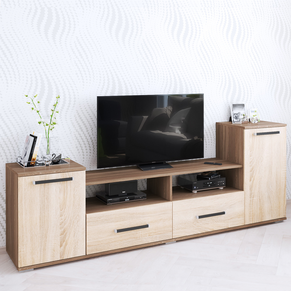 Тумба ТВ Парус-2 Дуб крафт табачный/Дуб крафт белыйГабариты (В×Ш×Г) 75 × 200 × 37.5 см