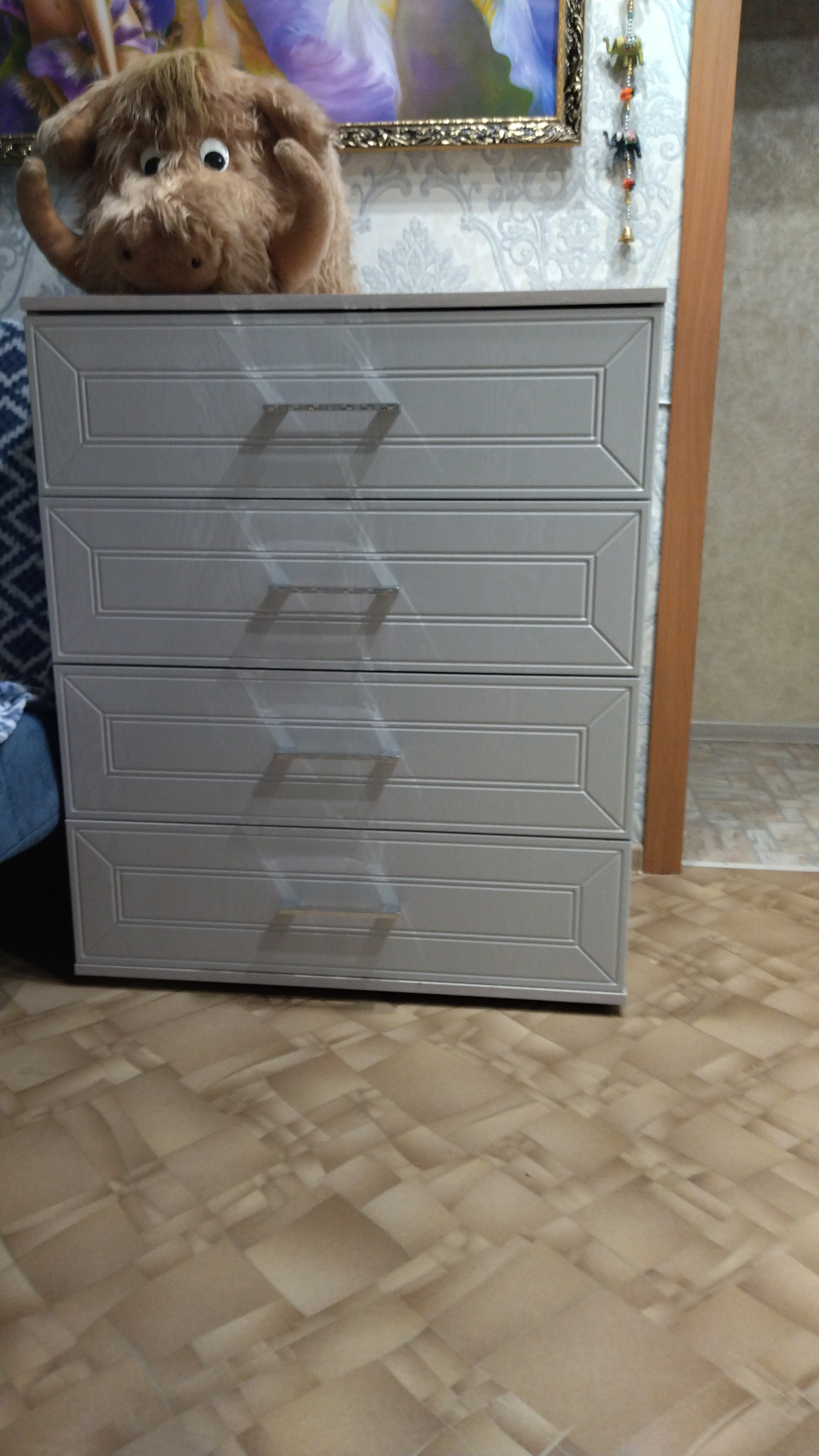 При сборке комода оказалось, что один из пакетов, в который упакованы ручка и фурнитура к нему, был надорван, и фурнитура для установки ручки отсутствует. Отверстия для установки рельсов в двух ящиках сделаны на разных уровнях, в связи с чем, расстояния между ящиками неравные, и второй ящик снизу закрывается только принудительно при поднятии третьего снизу ящика