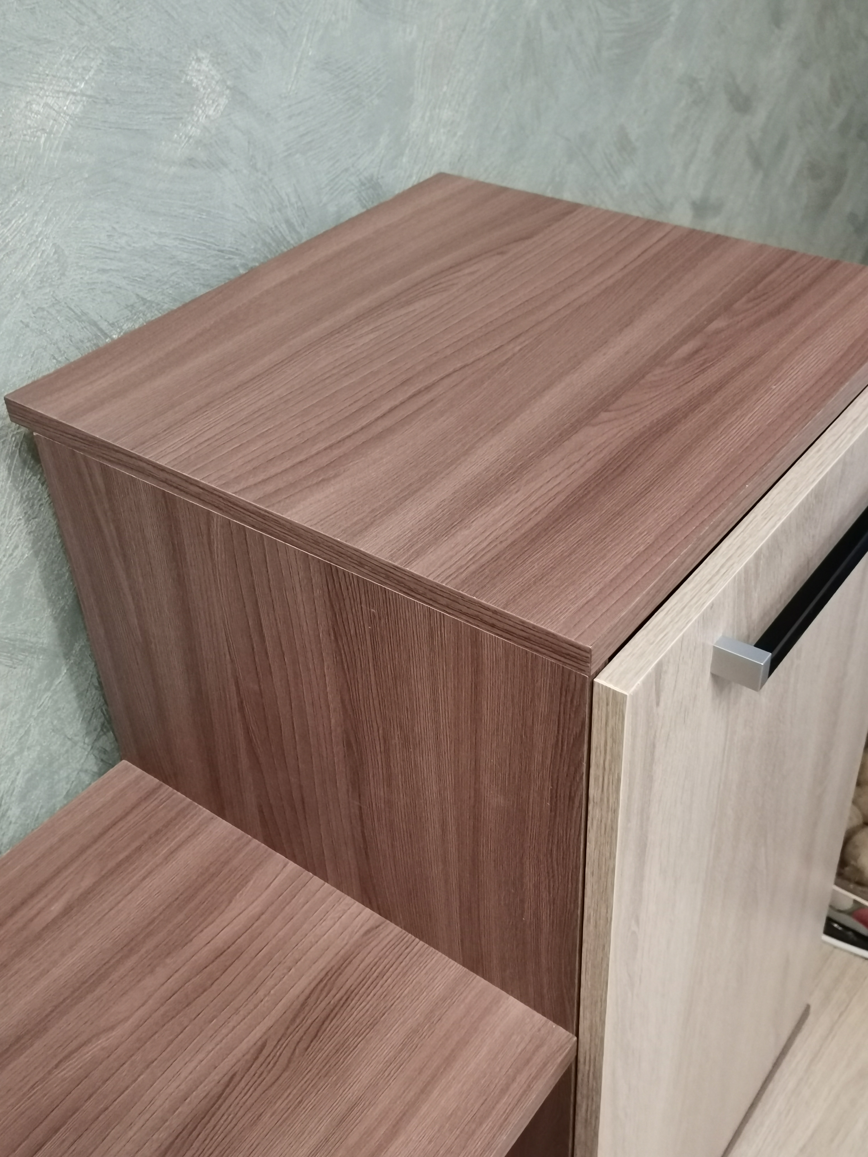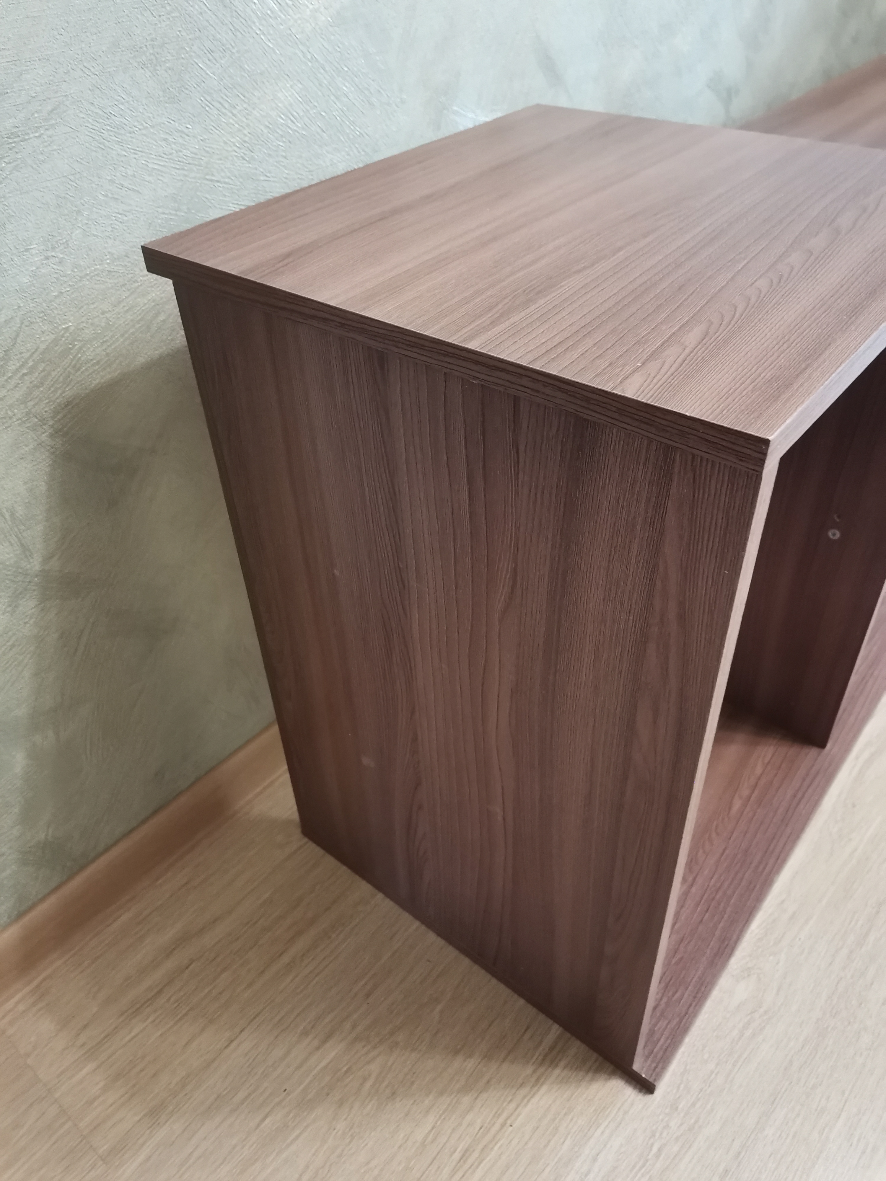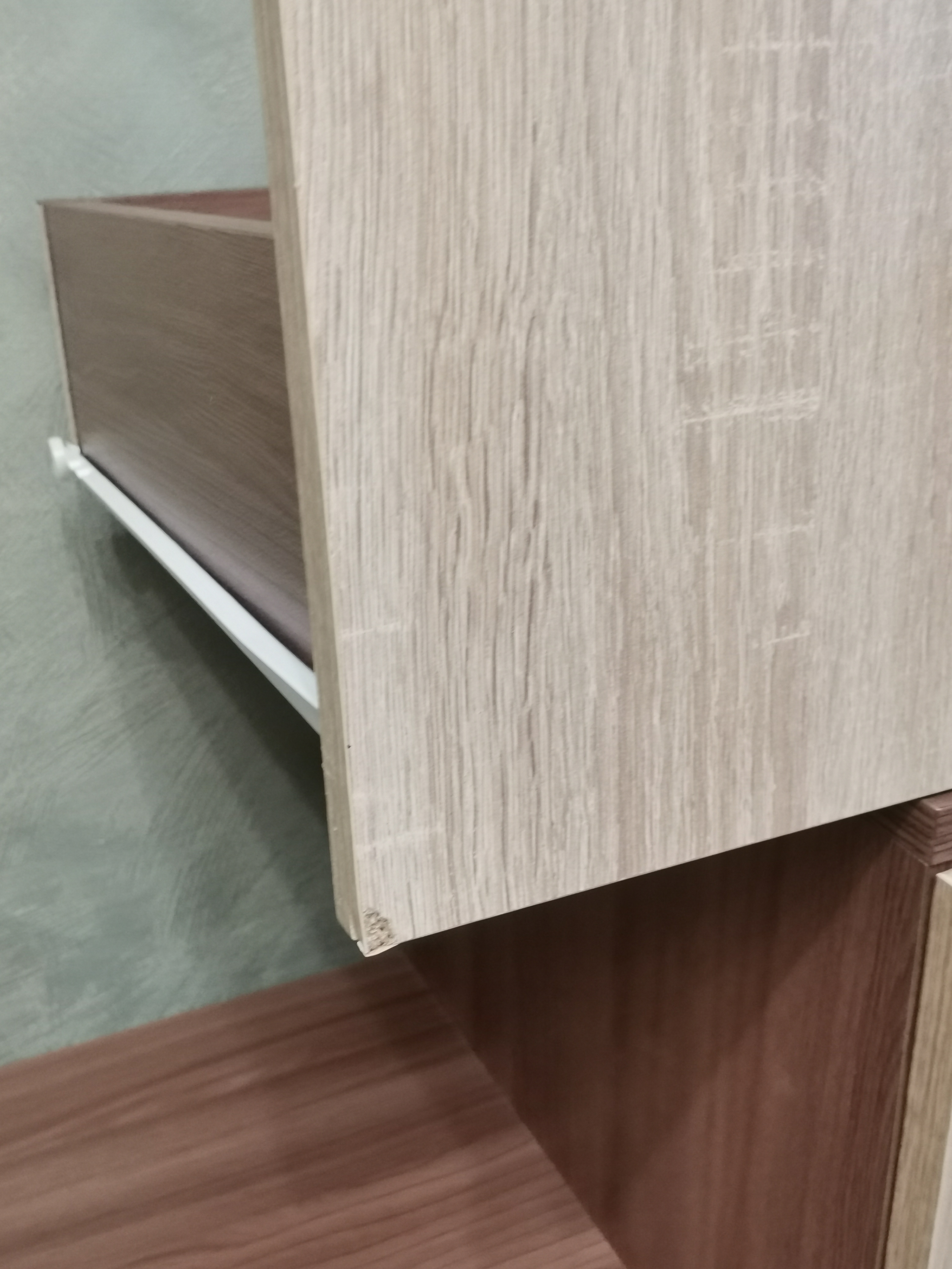 Счёт 2024 от 16.03.2022. Тумба тв Парус 2, стол журнальный Консул 3. Стол собран претензий нет. У тумбы тв: 1. Скол на передней панели выдвижного ящика, 2. Верхние панели боковых ящиков должны заходить на двери, а выступ получился в обратную сторону, к стене. Собрано все по отверстиям производителя. Явный брак верхних панелей.
