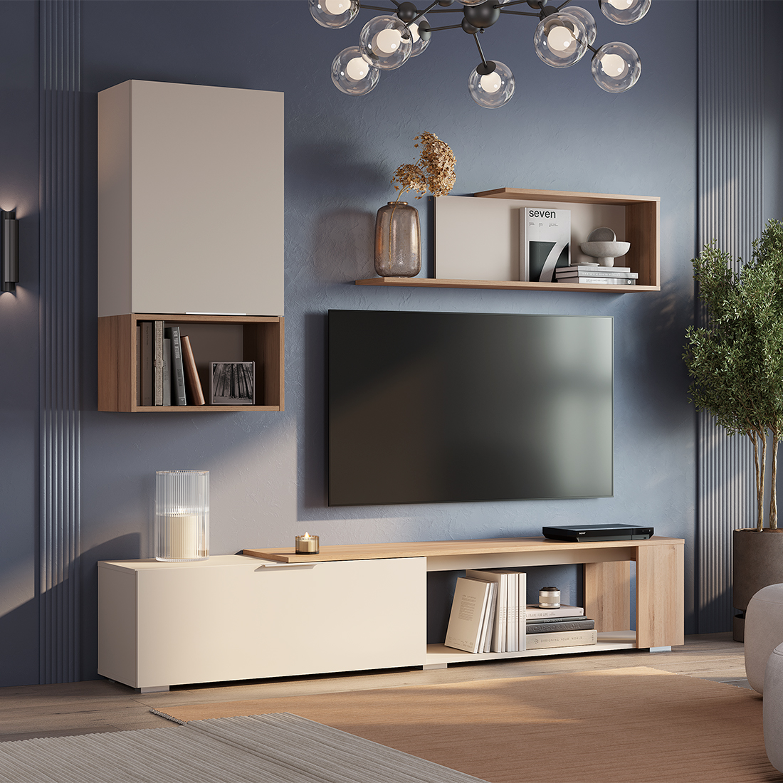 Гостиная "Кельн" - это современная коллекция, выполненная с минималистичном дизайне и мягких светлых оттенках "дуб смоки"/"кашемир". Четкая геометрия линий делает эту коллекцию утонченной и легкой, матовые поверхности фасадов практичны в использовании. "Кельн" гармонично дополнит любой интерьер и создаст в комнате теплую и уютную атмосферу. Все модули в комплекте отличаются функциональностью, которая позволит разместить любимые сувениры, книги, технику.