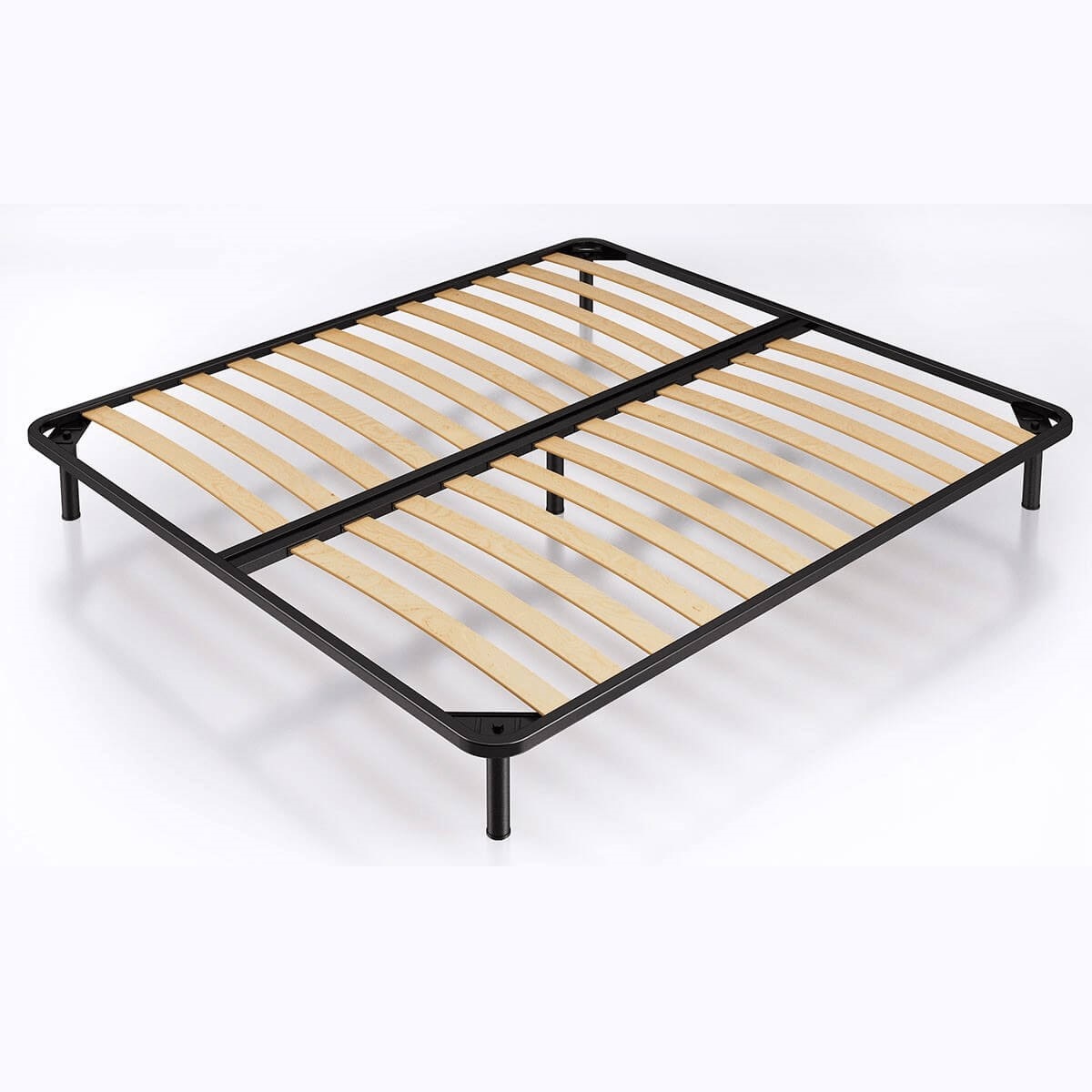 Здесь вы можете купить ортопедическое основание для кровати. Таким основанием может быть укомплектована кровать шириной спального места 900 мм. и длиной 2000 мм. Основание состоит из деревянных ламелей, закрепленных на металлическом каркасе, обеспечивающих ортопедический эффект.