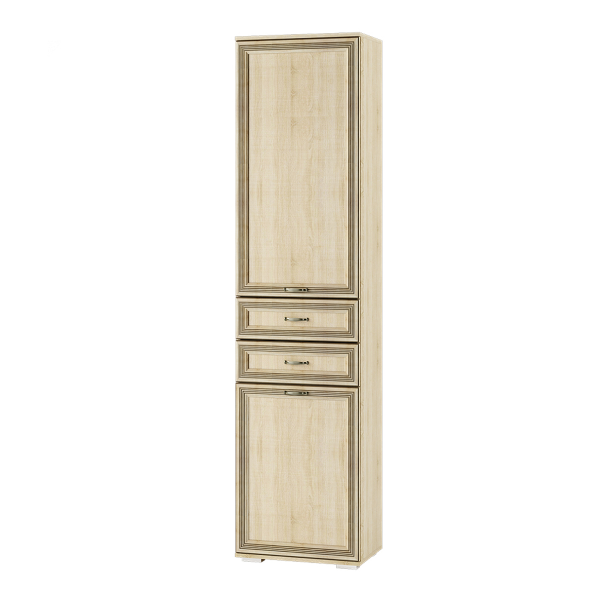 Пенальный шкаф ЛШ-3 создан в духе серии Ливорно и представляет собой высокий узкий шкаф, предназначенный для хранения различных вещей и одежды. Два закрытых створками отдела предоставляют возможность воспользоваться пенальными полками, а два выдвижных ящика посередине подойдут для малогабаритных предметов. Петли с доводчиками и бесшумные шариковые направляющие станут незаметной, но приятной деталью.