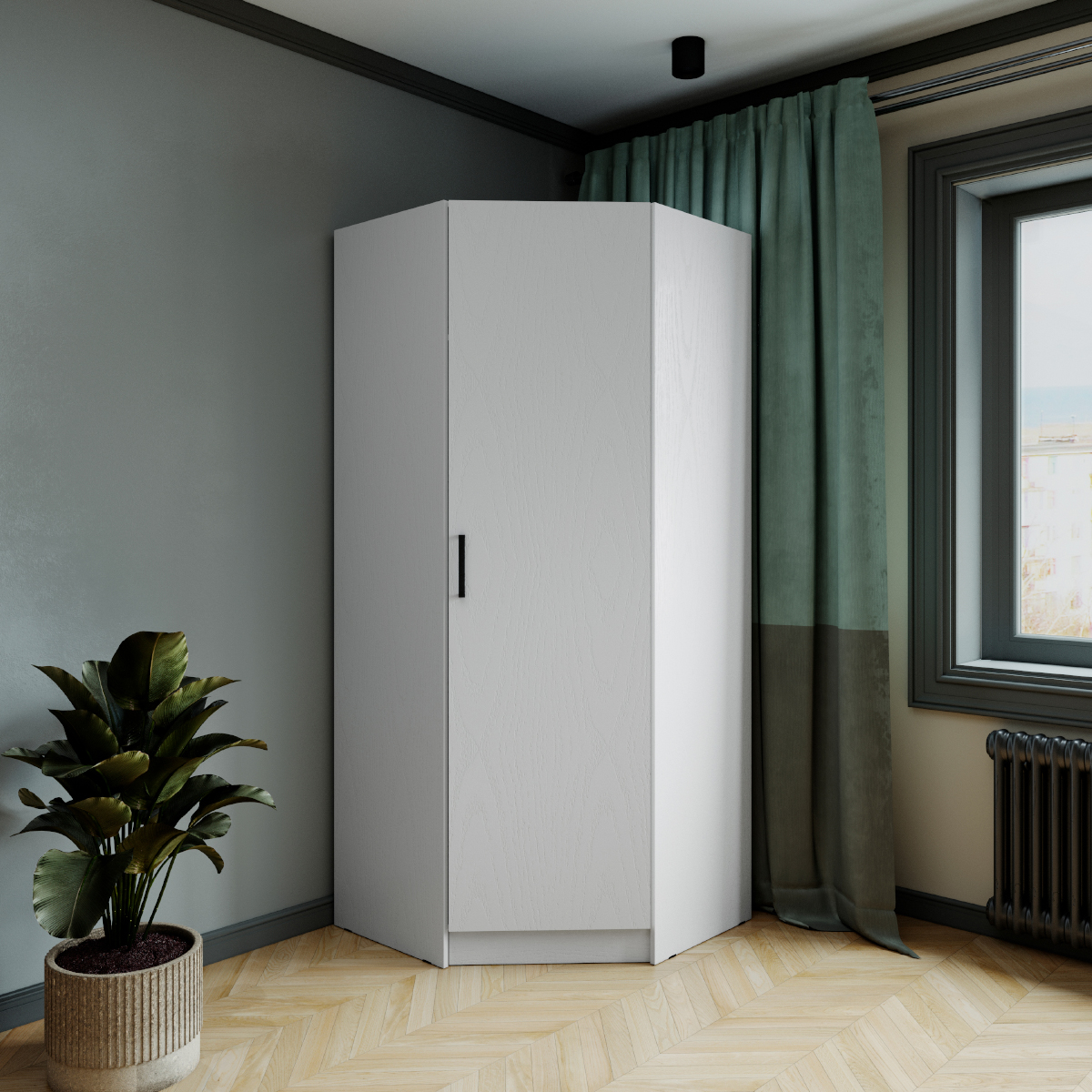 Шкаф комбинированный Ларс угловой угол скос белыйГабариты (В×Ш×Г) 210 × 90 × 90 см