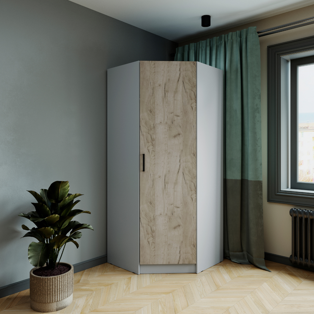 Шкаф комбинированный Ларс угловой угол скос камень серый/дуб крафт серый