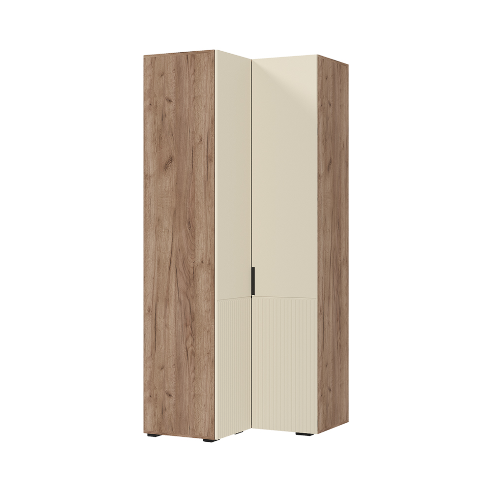 Угловой шкаф - это практичное и стильное решение для организации хранения в ограниченных пространствах. Сочетание закрытых полок и штанги для одежды позволяет удобно хранить как верхнюю одежду, так и аксессуары, а также идеально использовать угол комнаты, не загромождая пространство, Комбинируется с другими шкафами коллекции,