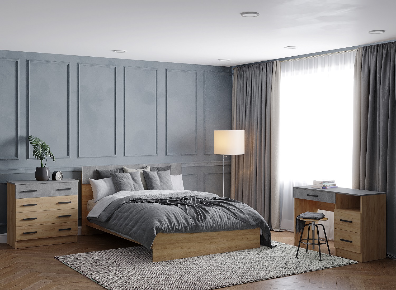 Особенности: Царги кровати не до пола, основание кровати-настил из ЛДСП
